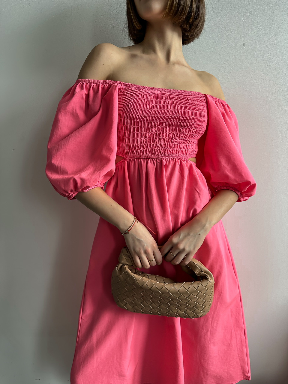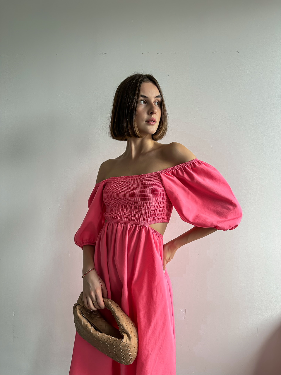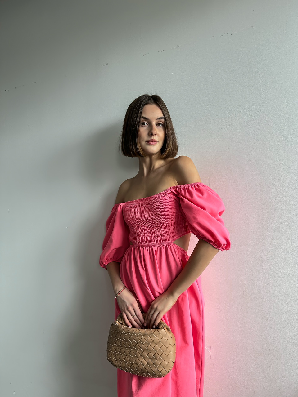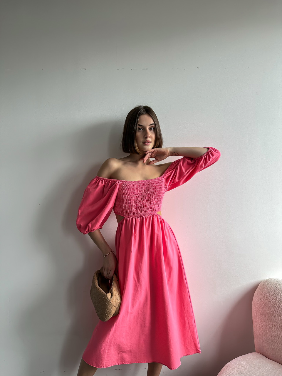 Midi šaty s krátkym rukávom a čiastočne odhaleným chrbátom.