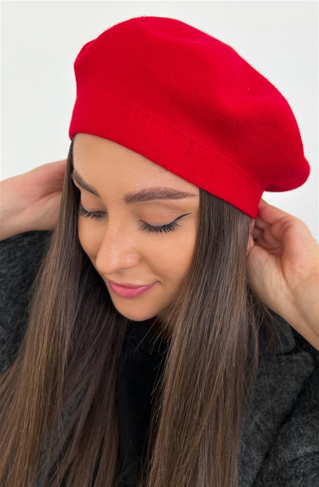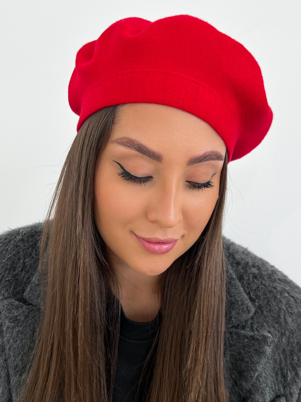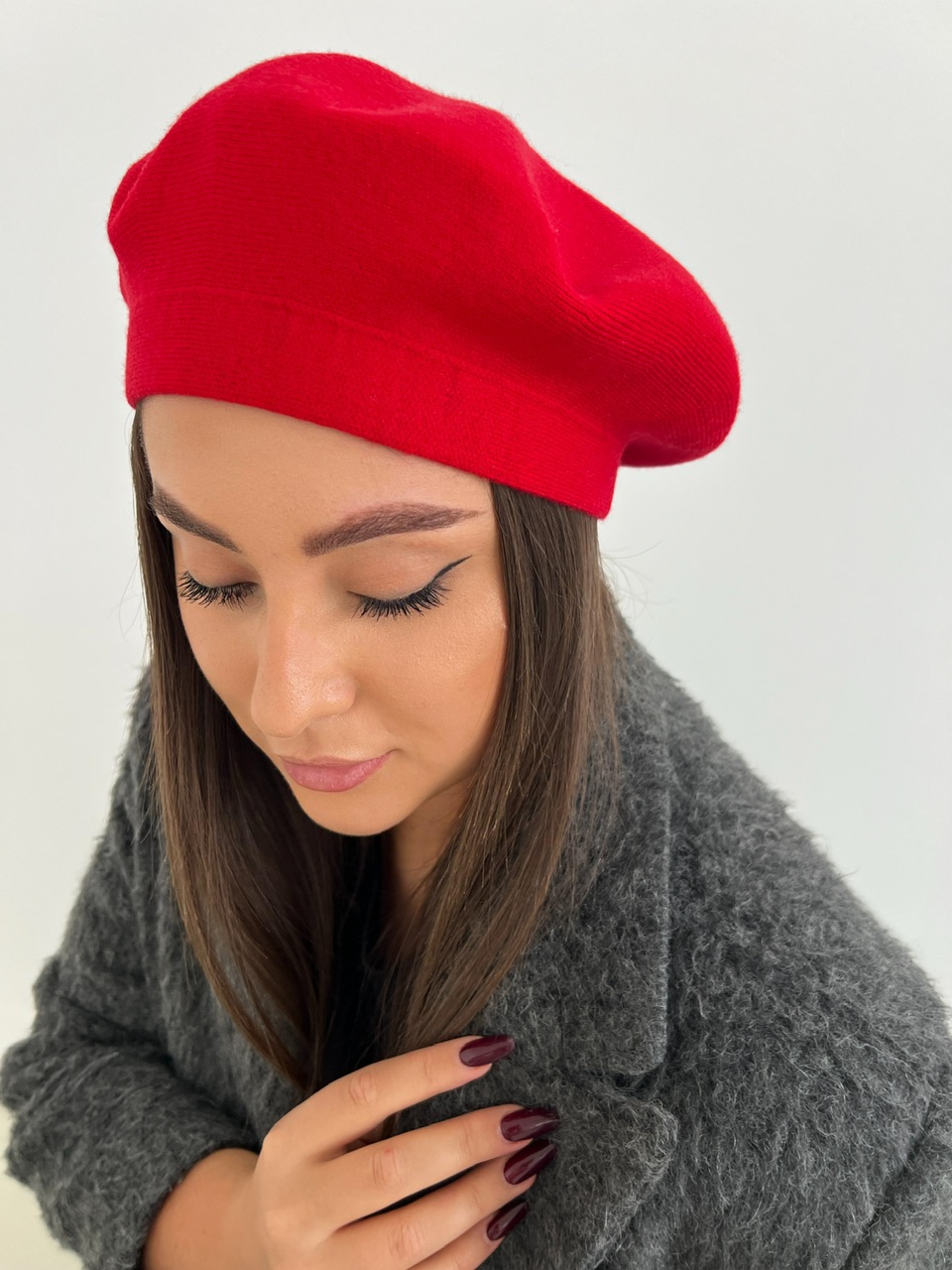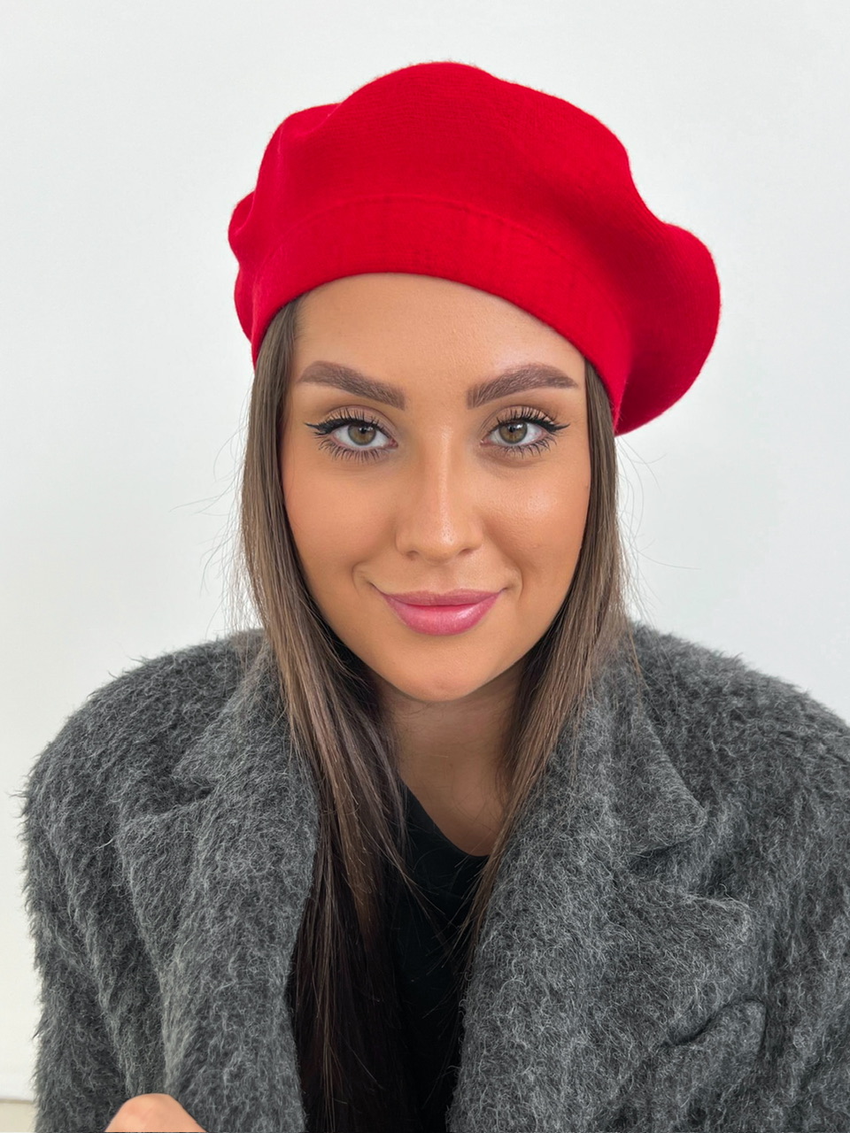 Červená baretka z jemného úpletu, príjemná na dotyk. Ideálny kúsok na jesen a zimu.