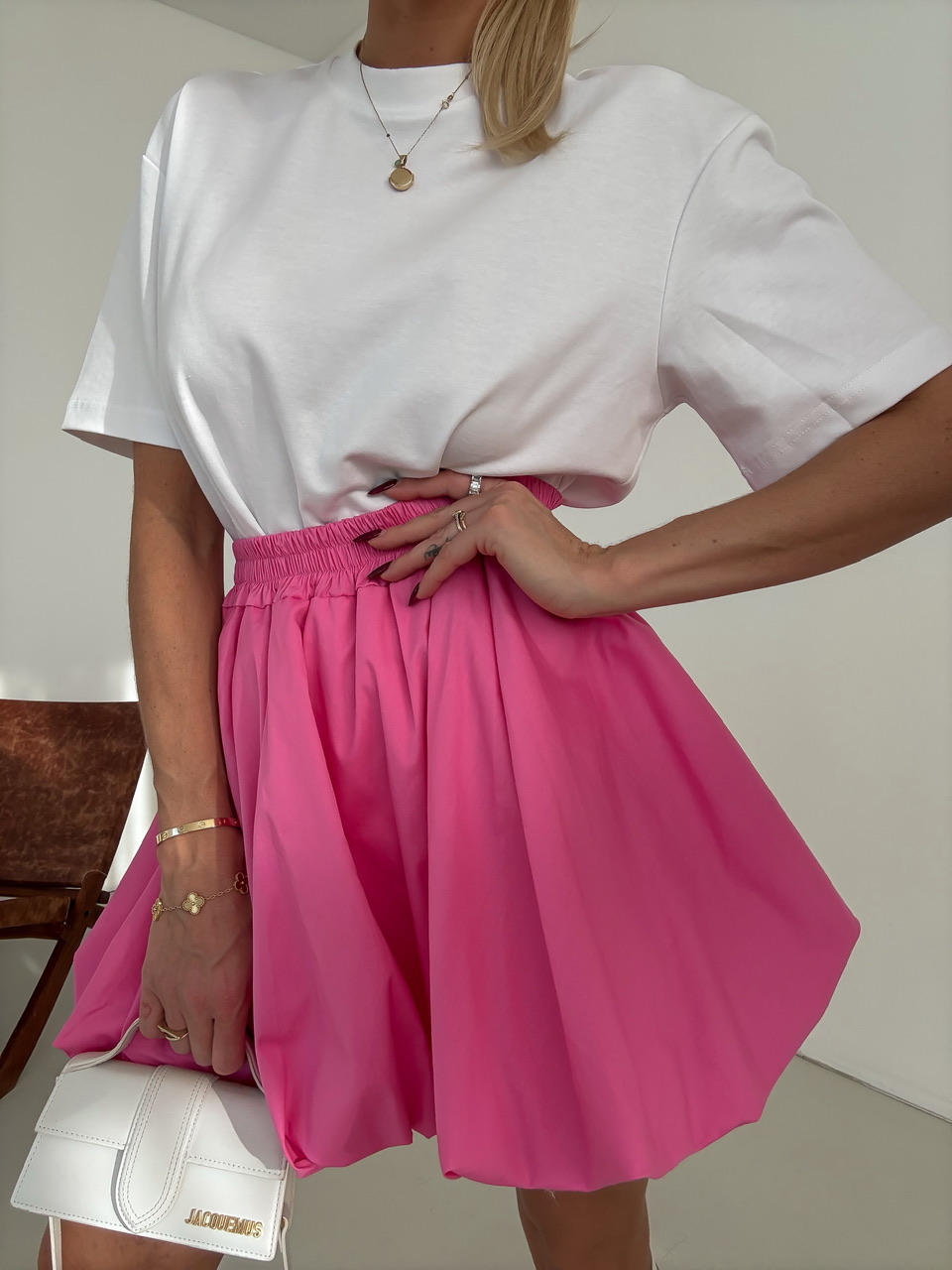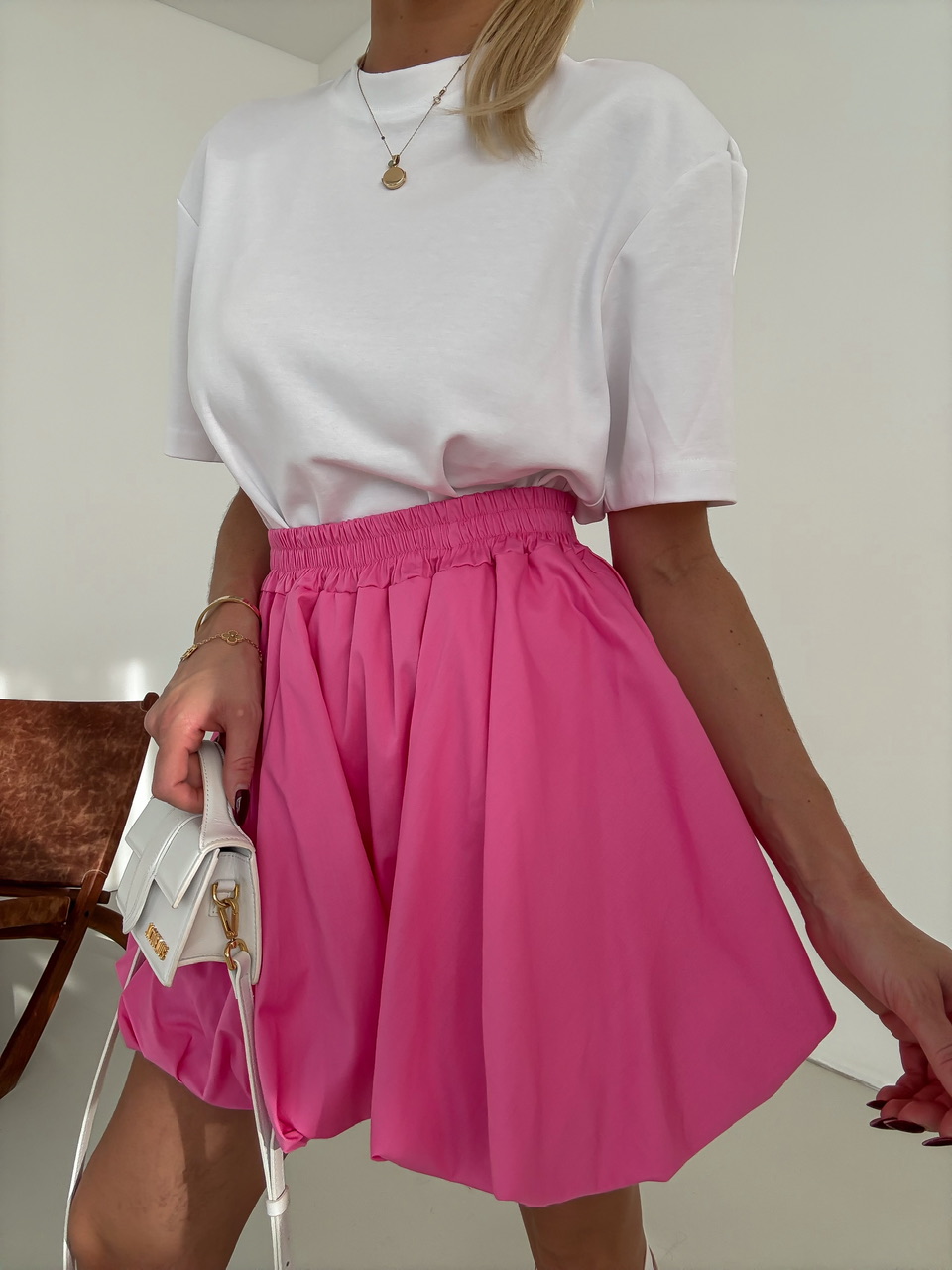 Áčková sukňa so skrytými kraťasmi je dokonalým spojením komfortu a elegancie. Vďaka ľahkému, vzdušnému materiálu krásne splýva a lichotí postave, zatiaľ čo skryté kraťasy poskytujú maximálnu voľnosť pohybu a istotu pri každom kroku. Elastický pás na gumu sa dokonale prispôsobí vašej postave a zaručí pohodlie po celý deň.