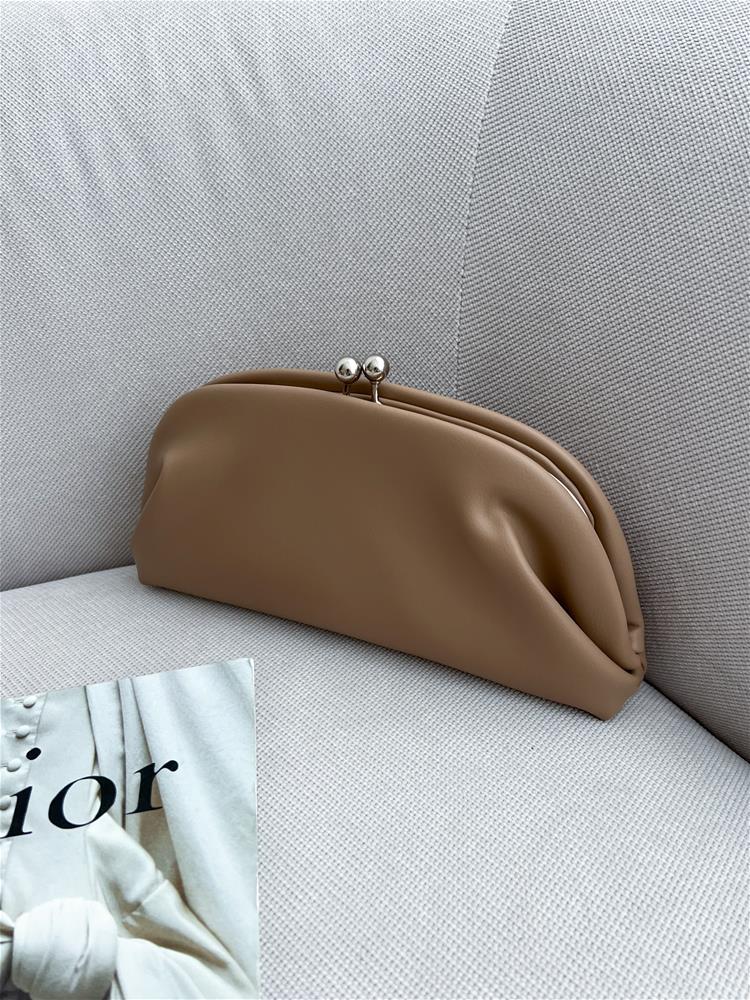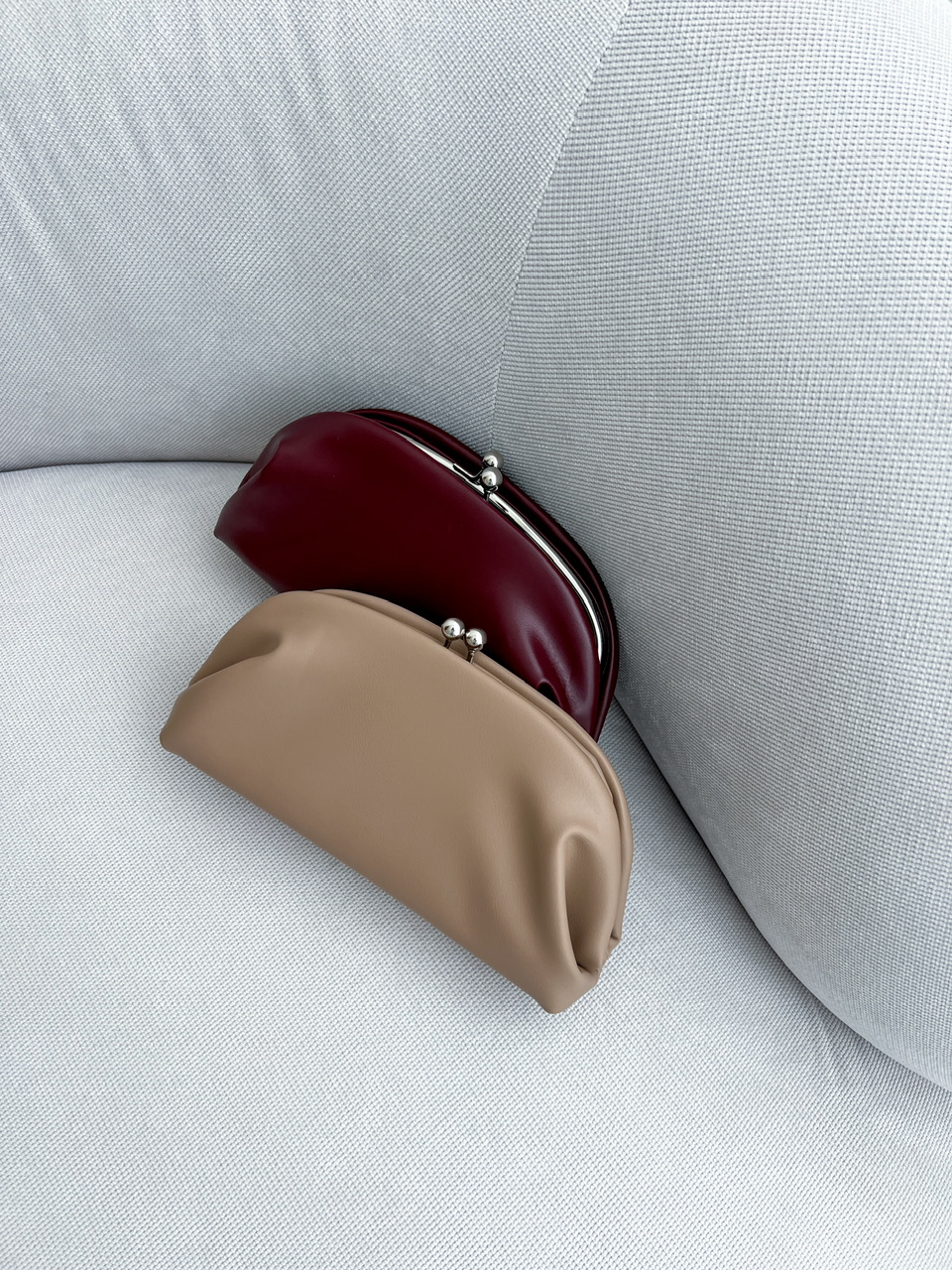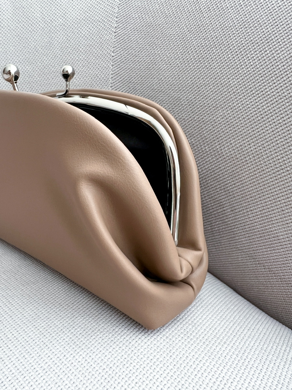 Malá elegantná kabelka do ruky. Vrchná časť otvárania je v striebornom kovovom prevedení. Vnútorná časť je podšitá a obsahuje jedno malé bočné vrecko. Kabeľka obsahuje aj striebornú retiazku cez plece.