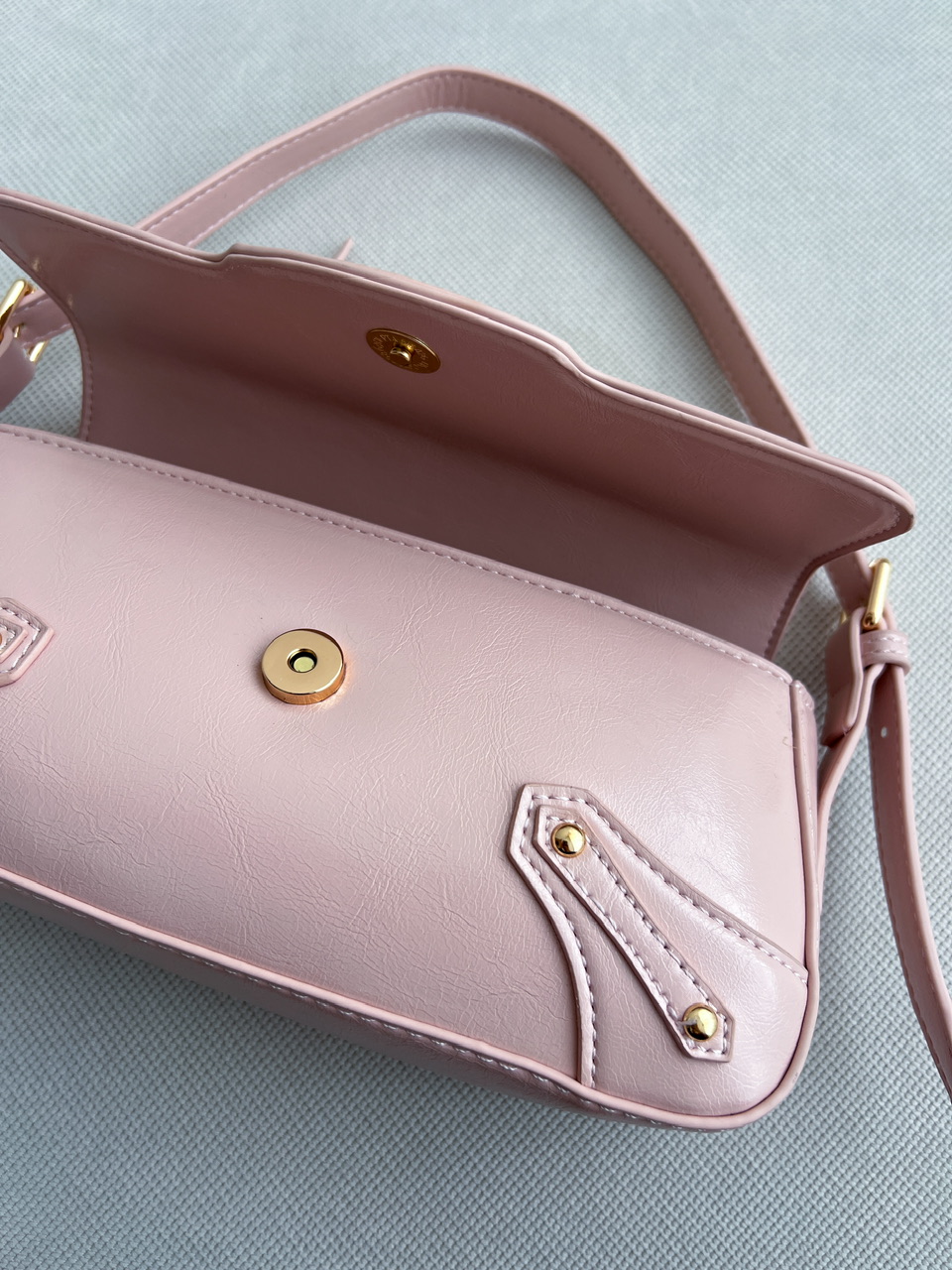 Mini kabelka do ruky alebo na plece v krásnej ružovo-pastelovej farbe, ktorá je hitom tejto sezóny. Zvršok kabelky je ozvláštnený zlatými prvkami. Kabelka obsahuje extra dlhšie remienko na plece, ktoré si viete zameniť za kratšie. Vnútorná časť je podšitá a po bočných stranách obsahuje jedno vrecko na zips a jedno otvorené vrecko. Kabelka má zapínanie na magnetický klips.