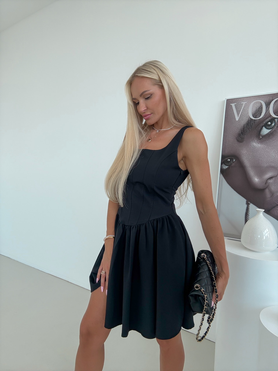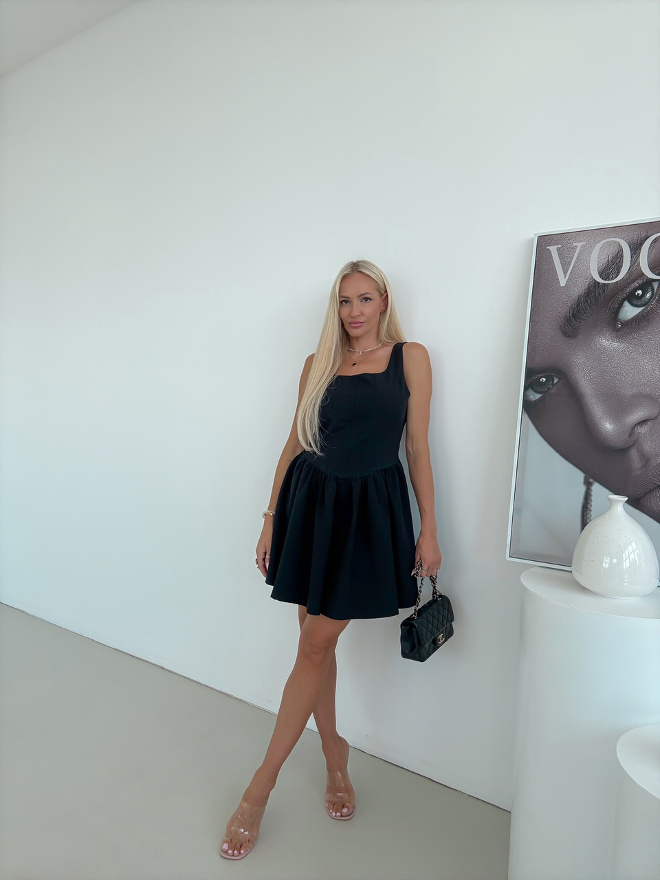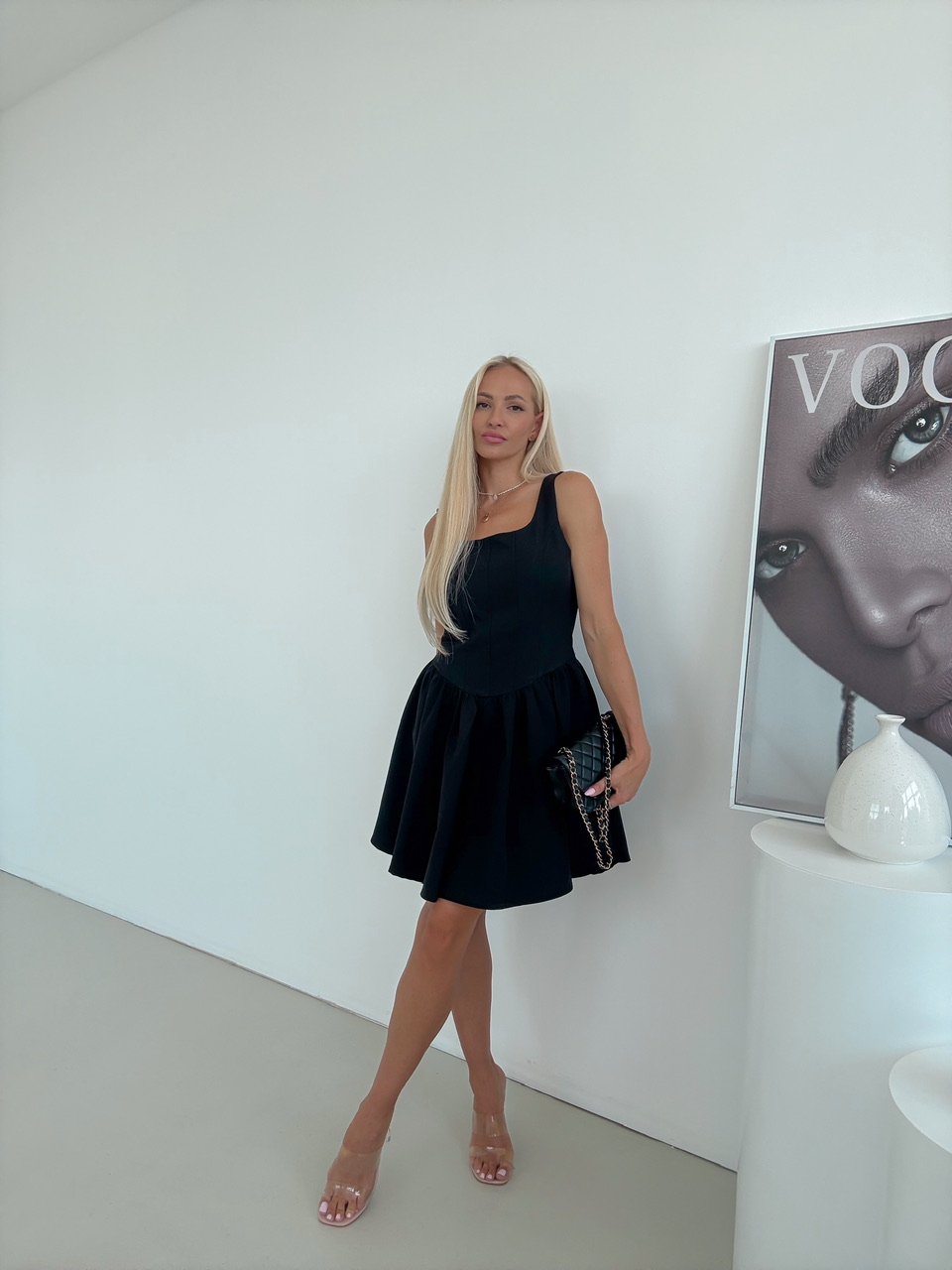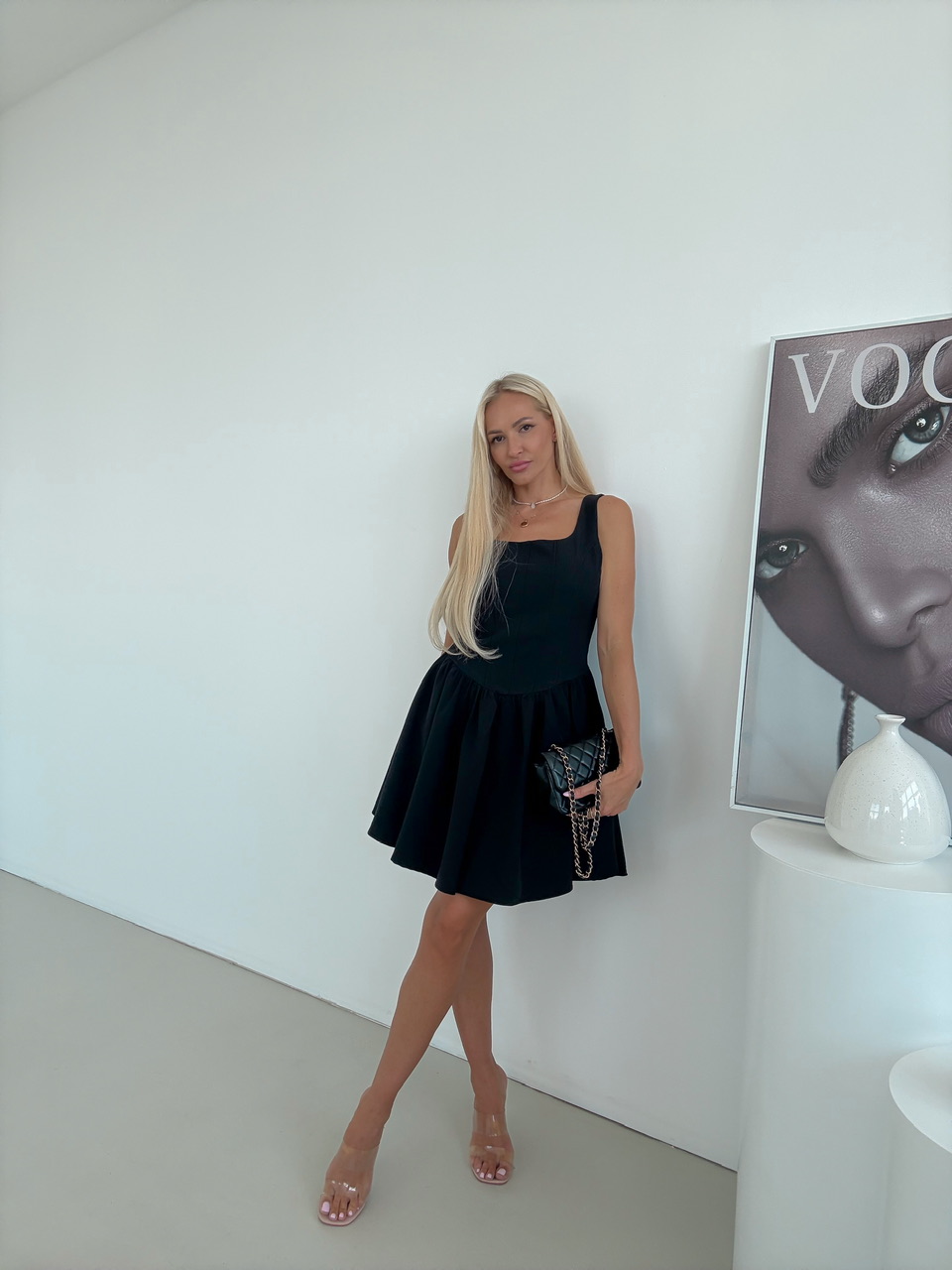Šaty s hrubými ramienkami poskytujú pohodlnú oporu, zatiaľ čo odhalený dekolt zvýrazňuje ženskosť a pridáva šmrnc každému outfitu. Šaty sú navrhnuté s bočným skrytým zapínaním na zips. Sukňa s jemným "puff" efektom dodáva šatám objem a noblesu, čím vytvára pôsobivý siluetu ideálnu na špeciálne príležitosti.