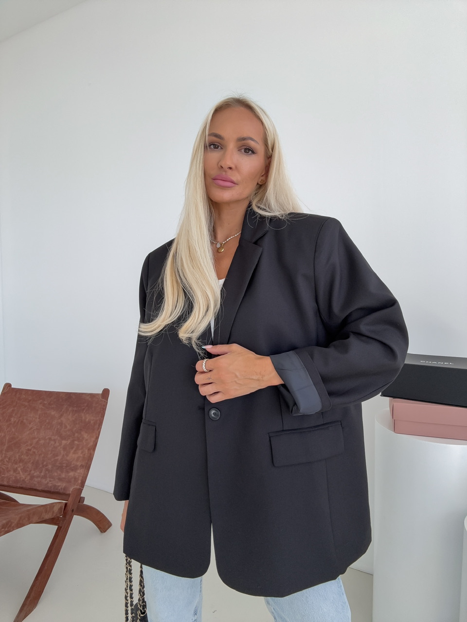 Dodajte svojmu outfitu štýlový nádych s týmto elegantným sakom, ktoré je ideálnou voľbou pre každodenné nosenie aj špeciálne príležitosti. Klasický golier a zapínanie na jeden gombík vytvárajú čistý a sofistikovaný vzhľad, ktorý lichotí postave.Sako je doplnené o dve praktické vrecká a vypchávky na pleciach, ktoré zabezpečujú dokonale vytvarovanú siluetu. Vďaka svojmu univerzálnemu dizajnu sa ľahko kombinuje.