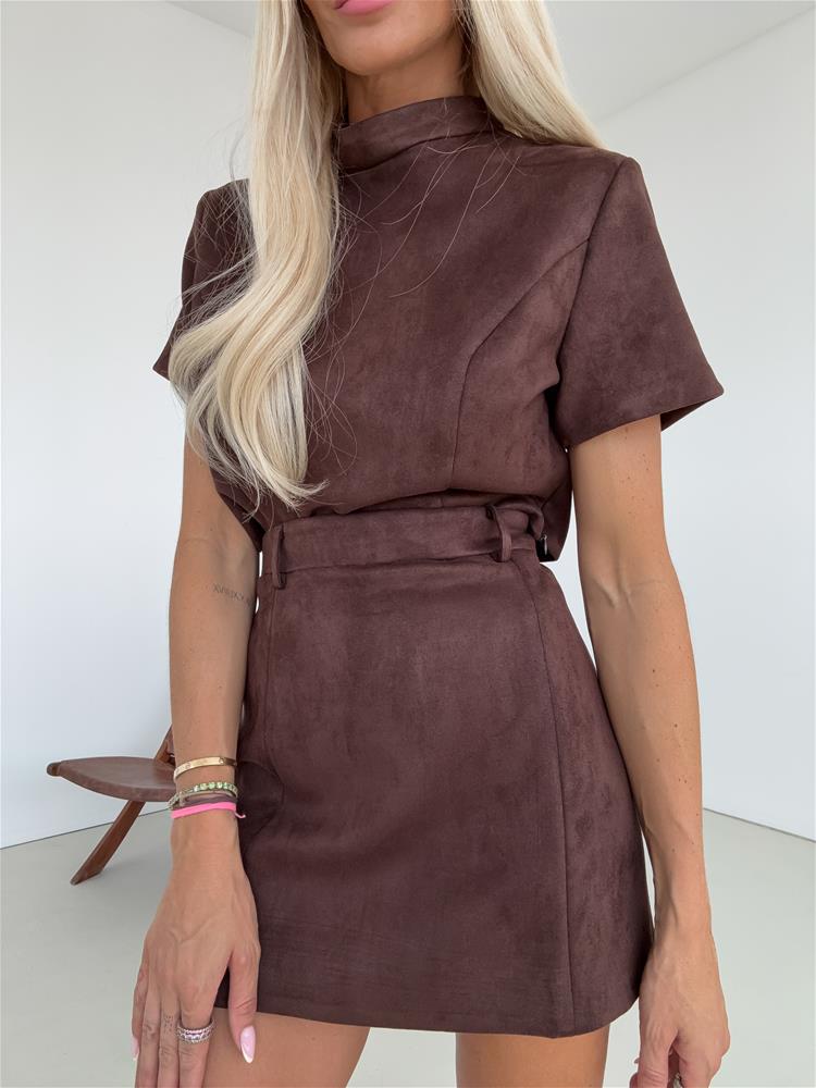 Štýlová puzdrová sukňa z jemného semišového materiálu. Priliehavý strih krásne kopíruje postavu a zvýrazní ženské krivky, zatiaľ čo hladký dizajn bez zbytočných ozdôb pôsobí sofistikovane. Sukňa má zadné zapínanie na zips pútka na opasok, čo umožňuje doladiť outfit podľa vlastného štýlu.
