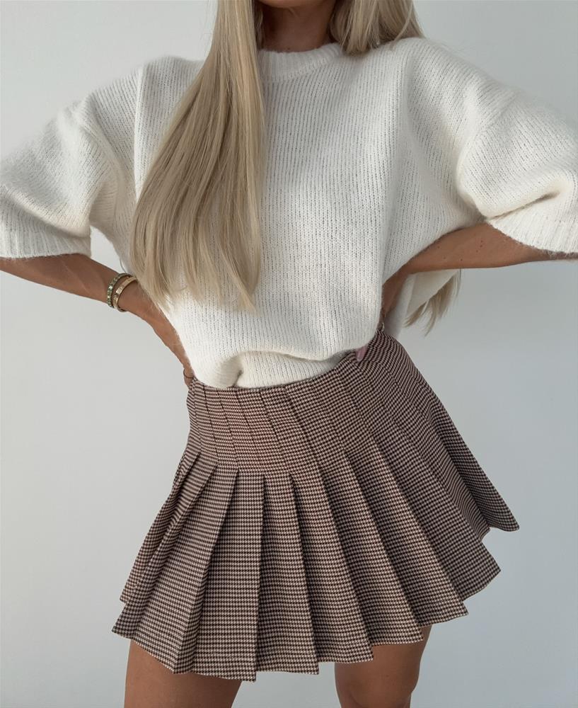 Praktický a štýlový kúsok, ktorý spája eleganciu sukne s pohodlím šortiek. Skort je vyrobený z ľahkého materiálu s výrazným vzorom v tmavých odtieňoch, ktoré pôsobia nadčasovo a ľahko sa kombinujú. Diskrétne bočné zapínanie na boku.