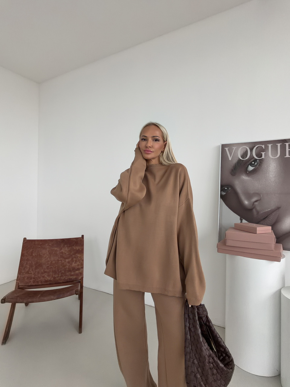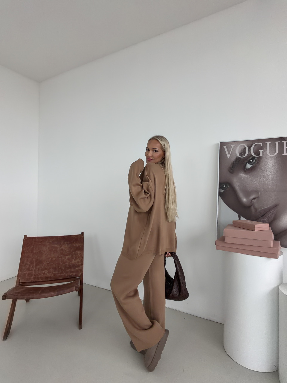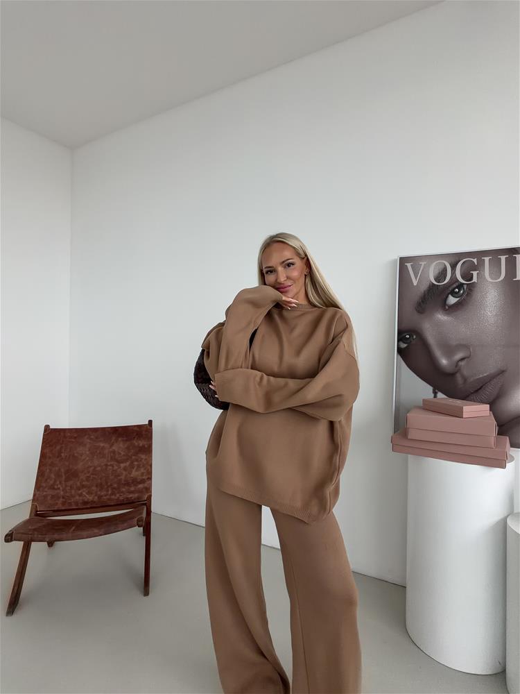 Pohodlný a nadčasový kúsok, ktorý sa stane základom vášho šatníka. Tento set je ušitý v štýlovom oversize strihu, ktorý zaručuje maximálne pohodlie a voľnosť pohybu. Jemný úplet je príjemný na dotyk a ideálny do chladnejších dní. Perfektný kúsok, ktorý si obľúbite pre jeho jednoduchosť a pohodlie.