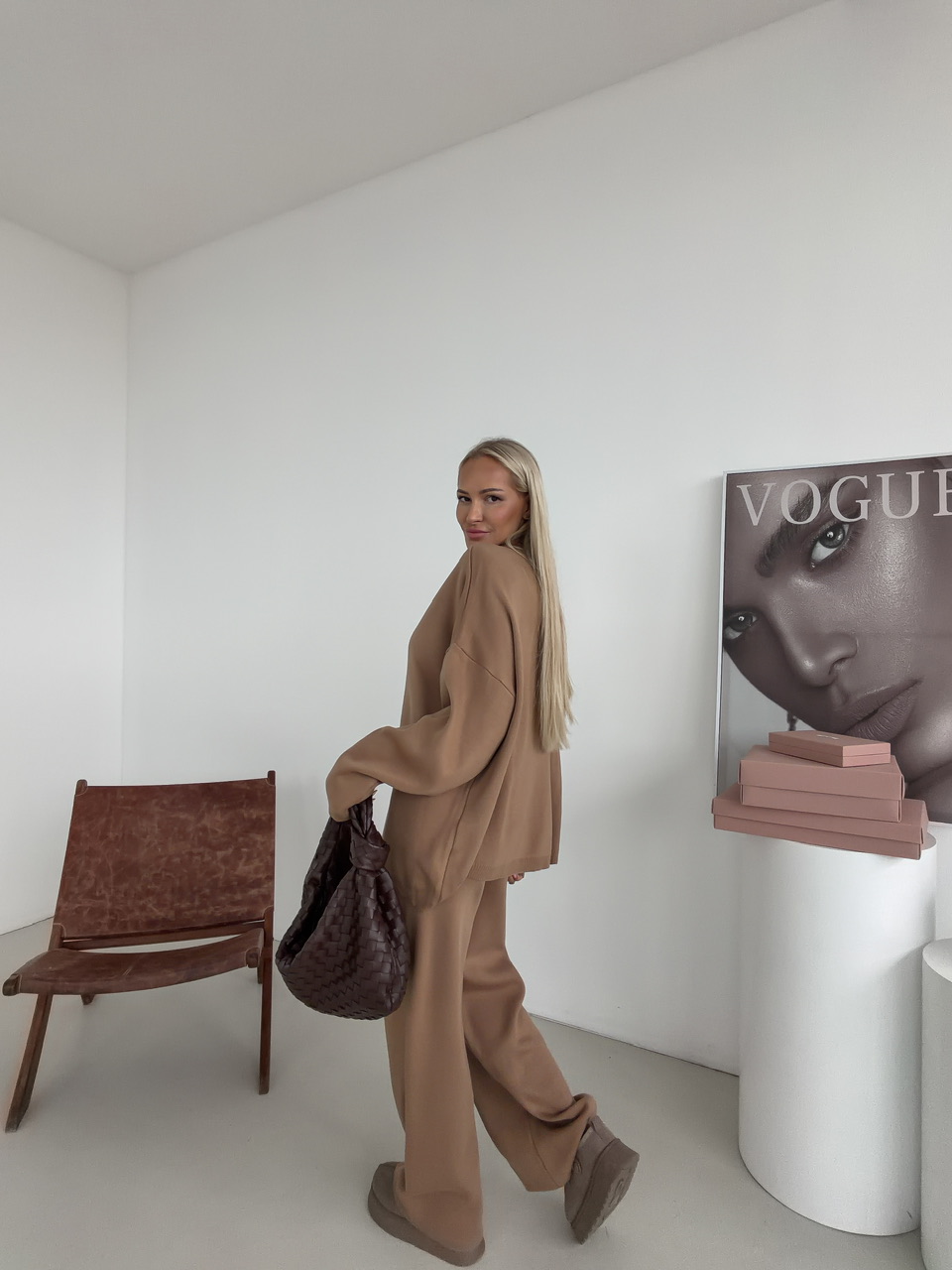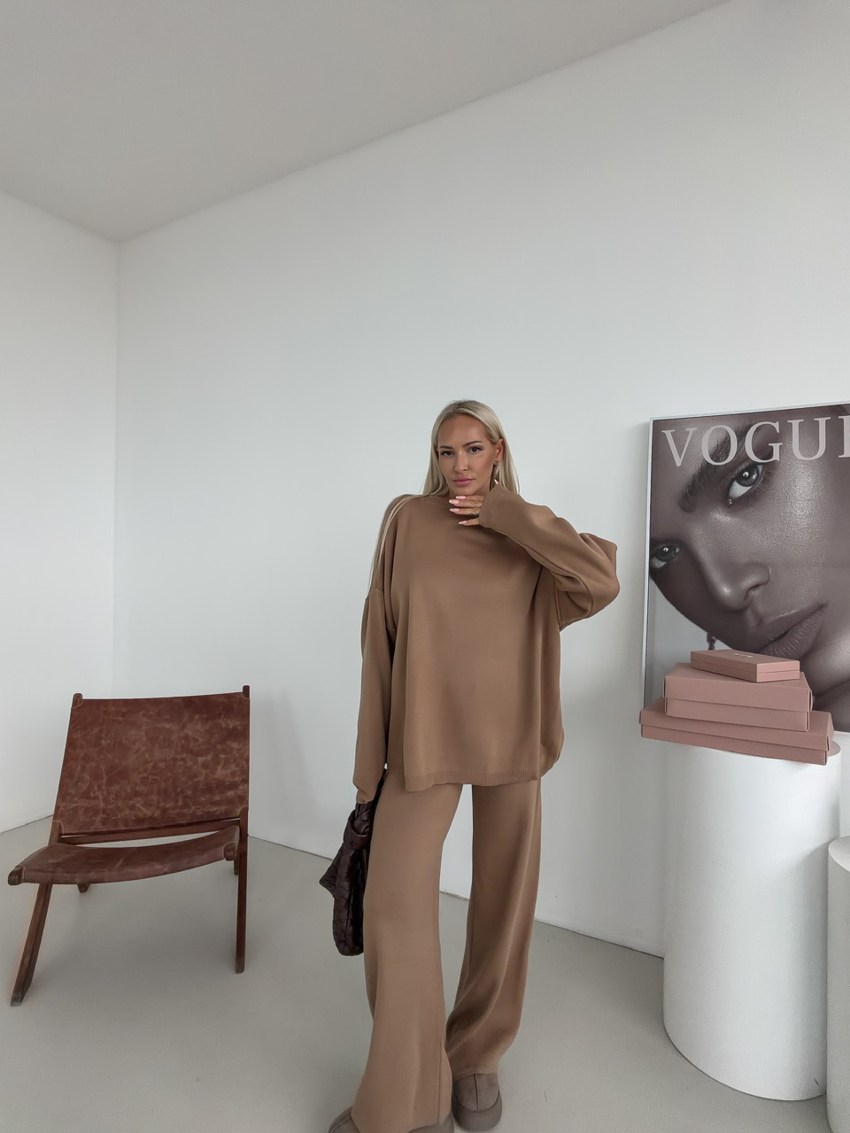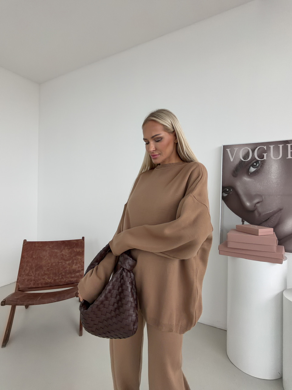 Pohodlný a nadčasový kúsok, ktorý sa stane základom vášho šatníka. Tento set je ušitý v štýlovom oversize strihu, ktorý zaručuje maximálne pohodlie a voľnosť pohybu. Jemný úplet je príjemný na dotyk a ideálny do chladnejších dní. Perfektný kúsok, ktorý si obľúbite pre jeho jednoduchosť a pohodlie.