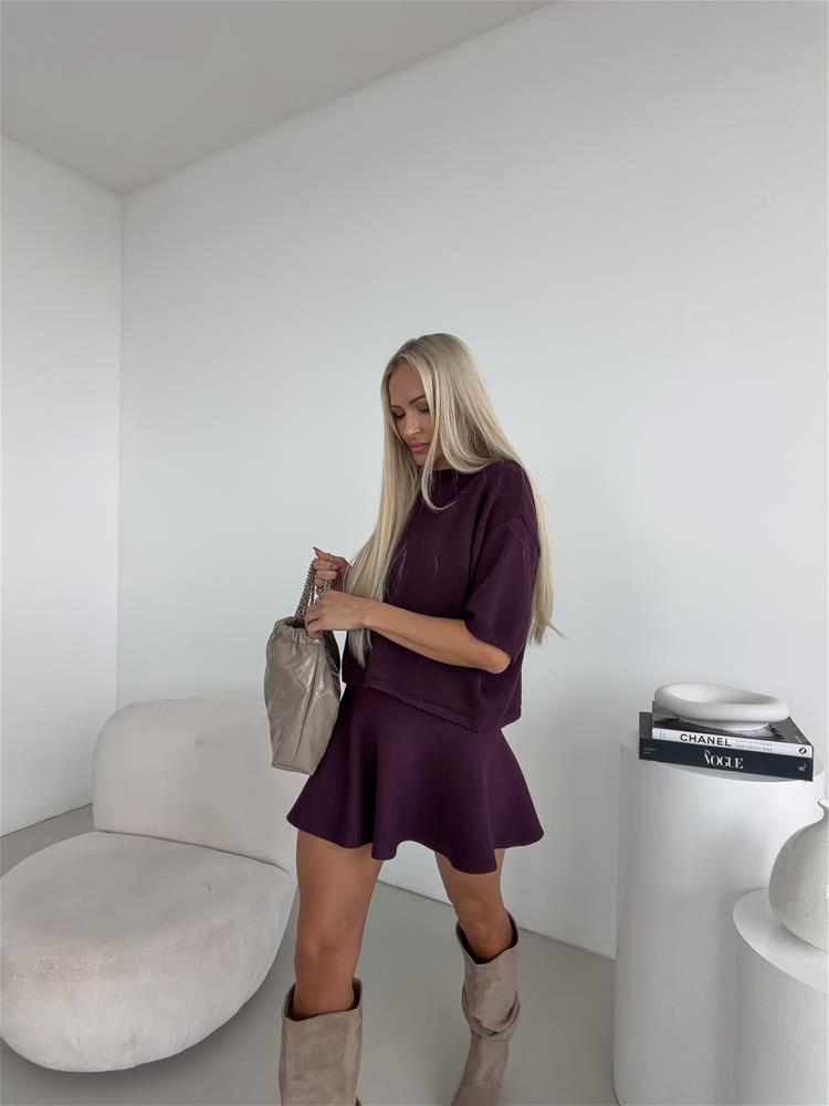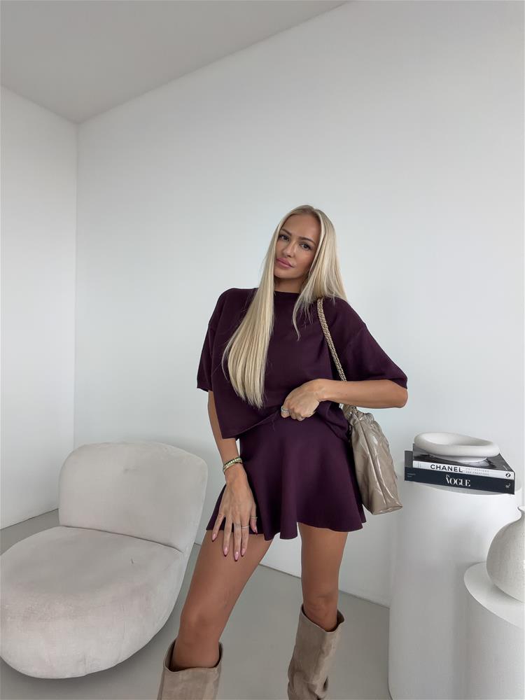 Elegantný a pohodlný pletený komplet, ktorý spája štýl a komfort v jednom. Set pozostáva z jemne elastickej mini sukne a voľného pulóvra, ktoré spolu vytvárajú nadčasový a minimalistický outfit ideálny na každodenné nosenie. Sukňa: elastický pás pre maximálne pohodlie. Pulóver: s krátkymi rukávmi, s jemným rebrovaným lemom. Jednoduchý, no výrazne ženský komplet, ktorý ľahko doplníš čižmami, teniskami alebo elegantnými doplnkami podľa príležitosti.