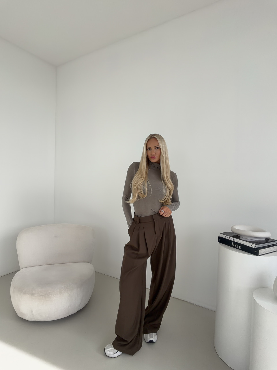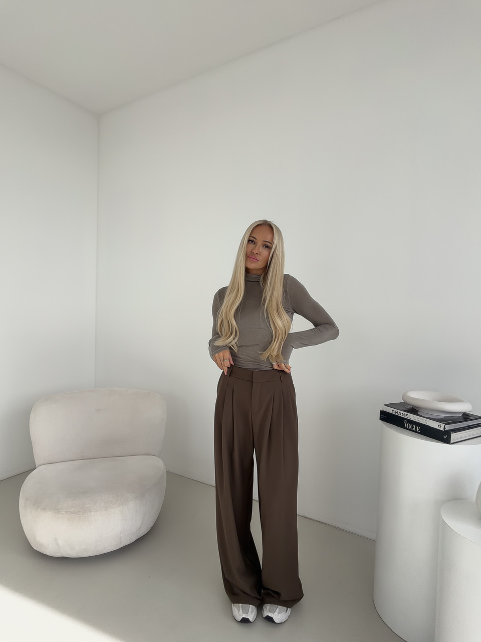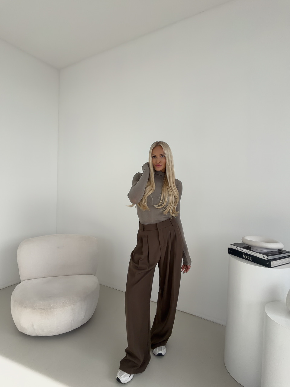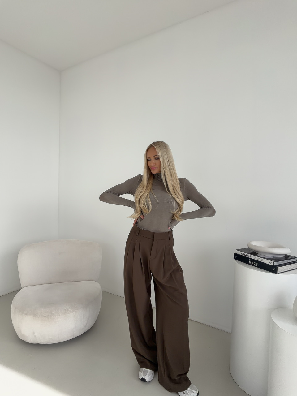 Tieto elegantné nohavice sú dokonalým spojením pohodlia a štýlu. Vďaka precíznemu strihu s pukmi pôsobia uhladene a profesionálne, no zároveň si zachovávajú moderný a uvoľnený vzhľad.Vyrobené z kvalitného, mierne lesklého materiálu, ktorý sa krásne prispôsobí postave a drží tvar. Nohavice majú zapínanie na háčik a zips, pútka na opasok a elegantný pád, ktorý predlžuje siluetu. Ideálne na bežné nosenie, do práce či na formálnejšie príležitosti – jednoducho kúsok, ktorý využiješ počas celého roka.