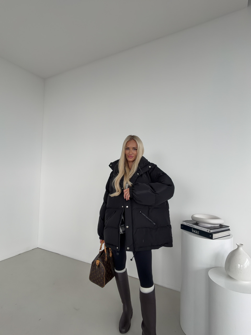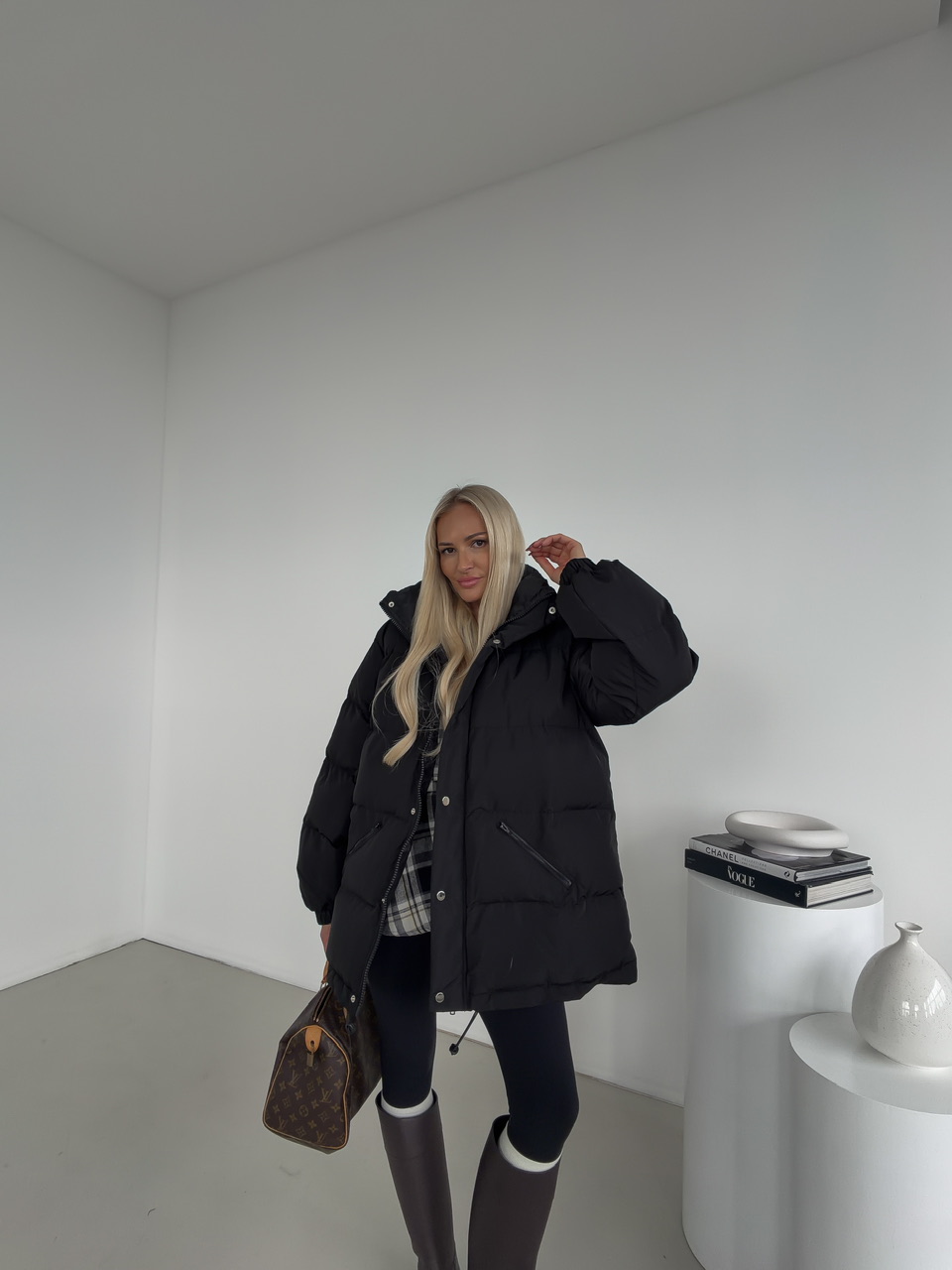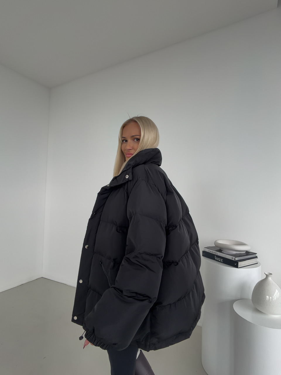 Minimalistická a hrejivá – táto čierna prešívaná bunda je ideálnym kúskom na chladné dni. Vďaka svojmu nadýchanému efektu, ľahkej výplni a nastaviteľnému spodnému lemu poskytuje dokonalé pohodlie aj ochranu pred vetrom. Bunda má praktické zapínanie na zips a patentné gombíky, dve zipsové vrecká a moderný rovný strih, ktorý sa hodí k športovým aj mestským outfitom.