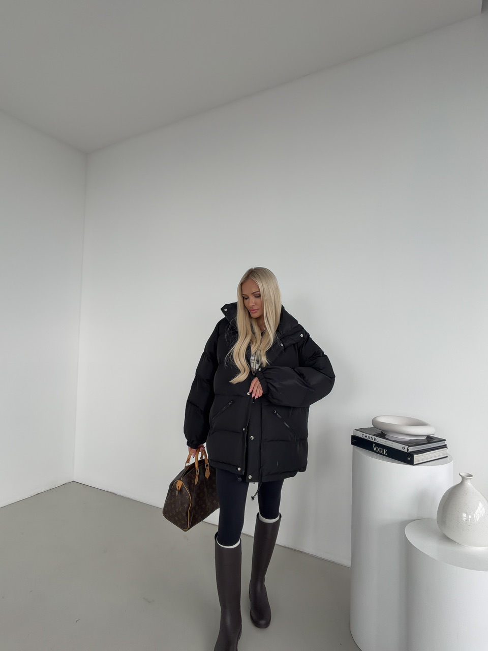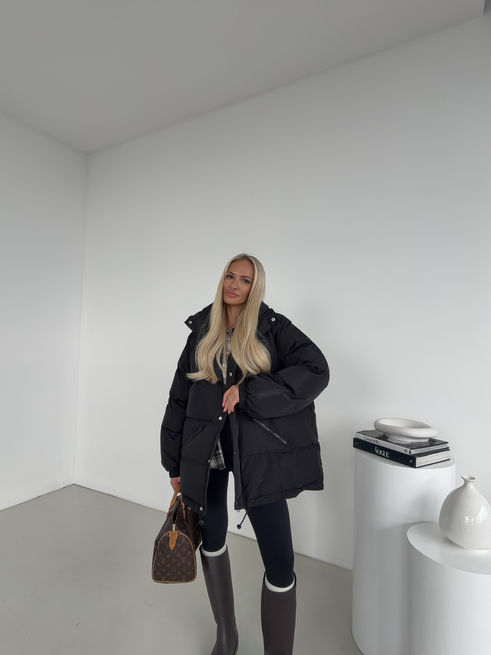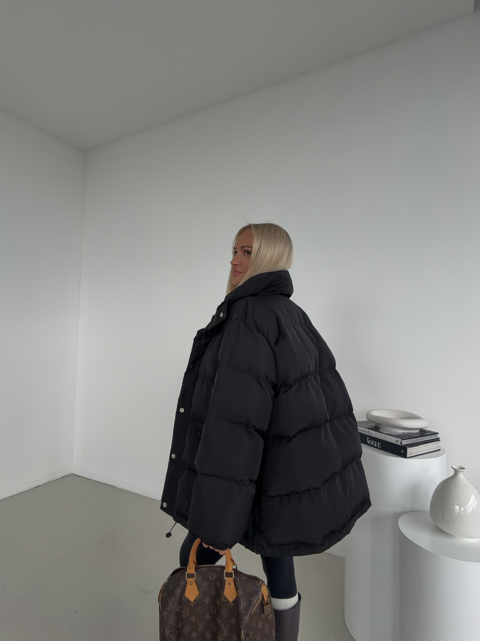 Minimalistická a hrejivá – táto čierna prešívaná bunda je ideálnym kúskom na chladné dni. Vďaka svojmu nadýchanému efektu, ľahkej výplni a nastaviteľnému spodnému lemu poskytuje dokonalé pohodlie aj ochranu pred vetrom. Bunda má praktické zapínanie na zips a patentné gombíky, dve zipsové vrecká a moderný rovný strih, ktorý sa hodí k športovým aj mestským outfitom.