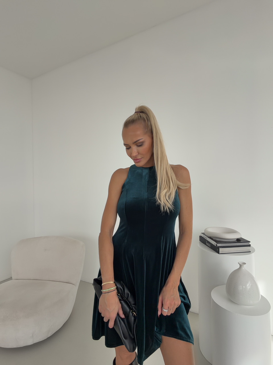 Elegantné a výrazné šaty z mäkkého zamatového materiálu, ktoré okamžite upútajú svojím luxusným vzhľadom. Látka krásne odráža svetlo a jemne obopína postavu, čím vytvára ženskú a zvodnú siluetu. Bezrukávový strih a jednoduchá línia robia z týchto šiat univerzálny kúsok – vhodný na večerné podujatia, sviatočné oslavy či špeciálne príležitosti.