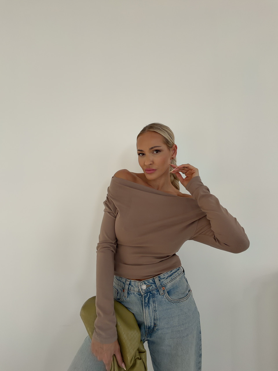 Mäkučký, príjemne pružný basic top, ktorý využiješ každý deň. Hladký úplet krásne splýva, neškriabe a drží tvar. Jednoduchý strih s dlhým rukávom je ideálny na samostatné nosenie aj vrstvenie pod sako, sveter či košeľu.