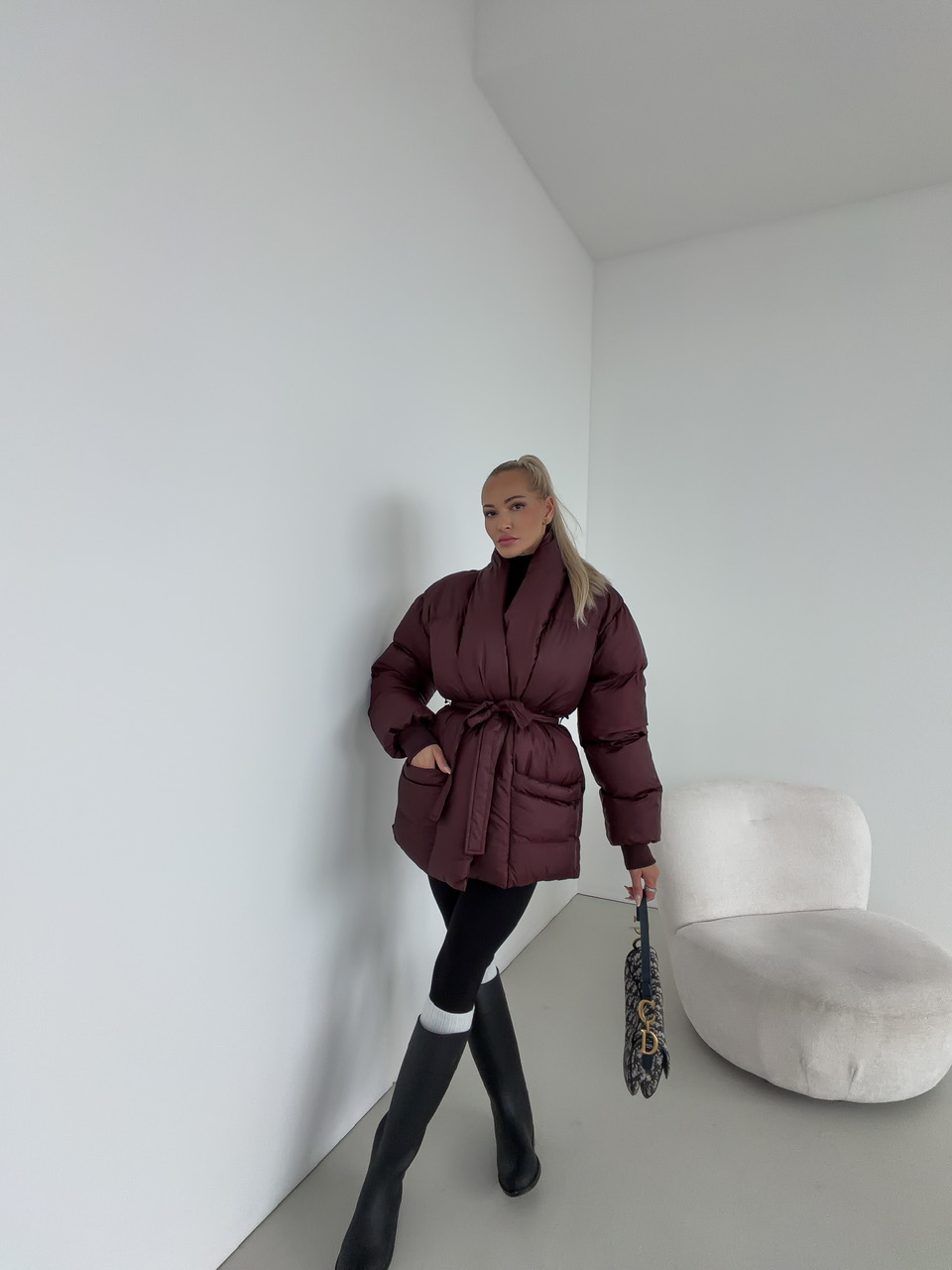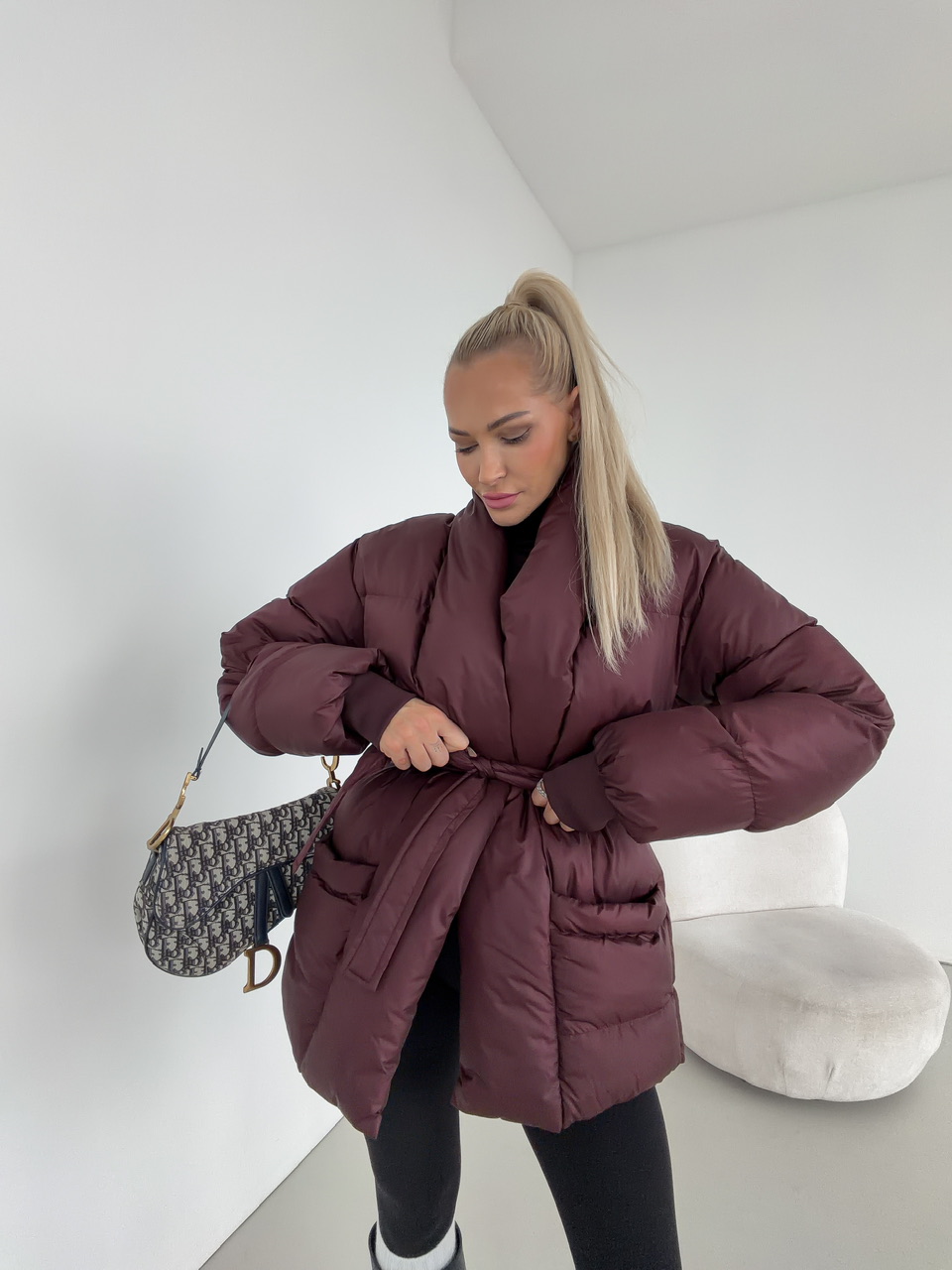 Moderná zimná bunda je dokonalou kombináciou pohodlia, štýlu a praktickosti. Navrhnutá bez klasického zapínania, upevňuje sa elegantným viazaním v páse, ktoré krásne zvýrazní siluetu a umožní prispôsobiť bundu podľa potreby. Bunda má dve praktické predné vrecká, ideálne na zahriatie rúk či odloženie drobností. Hrejivý materiál poskytuje výbornú ochranu pred chladom, pričom jej nadčasový strih sa ľahko kombinuje s každodennými outfitmi.