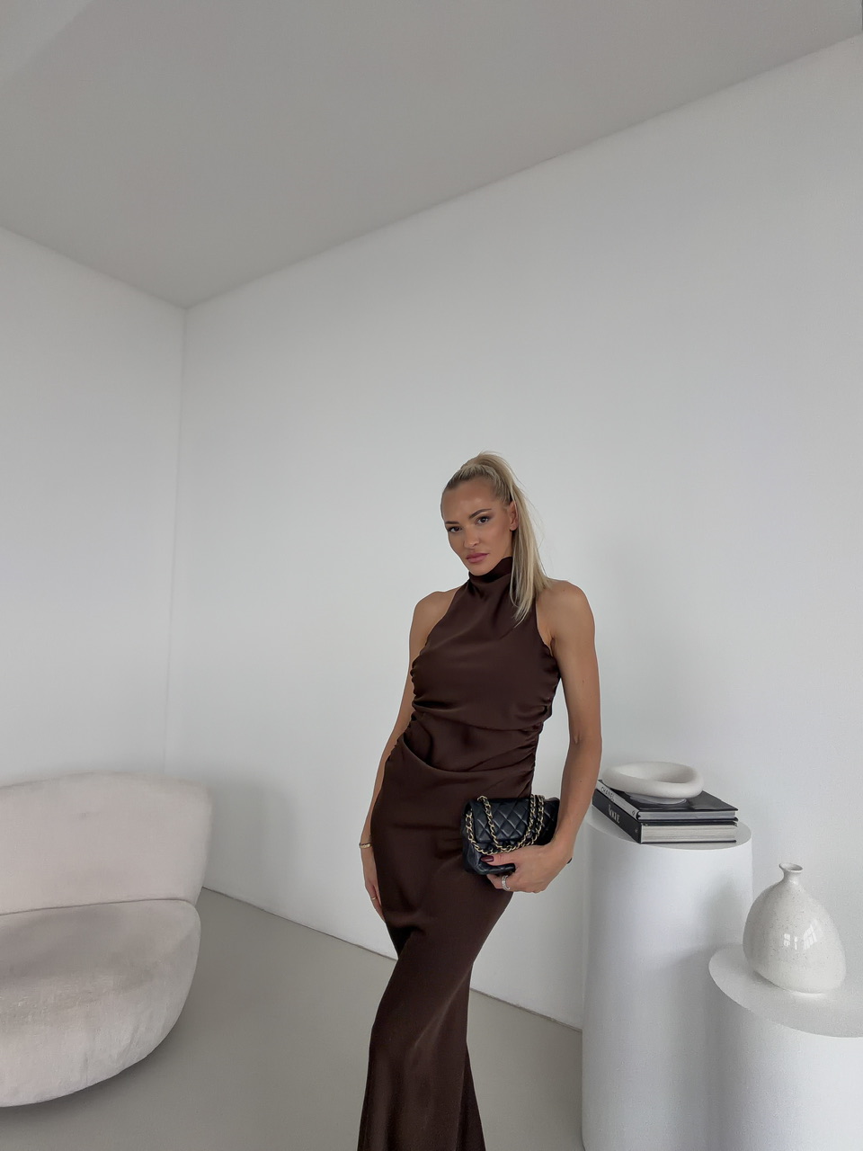 Objavte eleganciu v týchto dlhých šatách, ktoré dokonale kombinujú sofistikovanosť a moderný dizajn. Ich výrazným prvkom je asymetrický chrbát, ktorý dodáva šatám jedinečný a zároveň jemne provokatívny vzhľad. Vyrobené z kvalitného materiálu, ktorý príjemne padá a pohodlne sa nosí, tieto šaty sú ideálne na večerné udalosti, spoločenské akcie alebo špeciálne príležitosti.