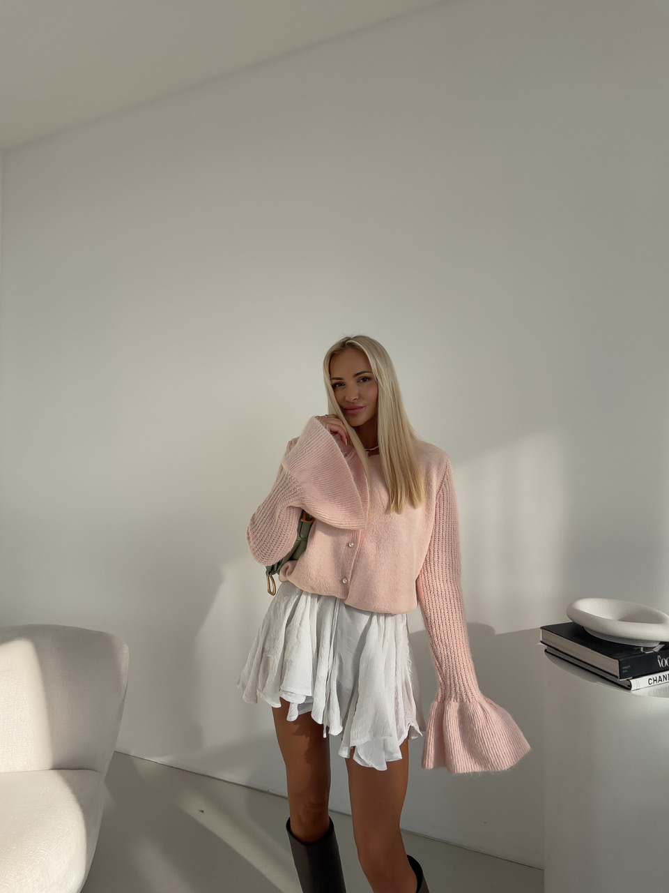 Elegantný sveter so zapínaním na perličky. Jemný, nadčasový a maximálne ženský – tento sveter je kúsok, ktorý by nemal chýbať v žiadnom šatníku. Vyrobený z mäkkého, hrejivého úpletu, poskytuje pohodlie počas celého dňa. Najväčšou ozdobou sú perličkové gombíky, ktoré dodávajú svetru elegantný a romantický nádych. Perfektný do práce, na stretnutie s priateľmi aj večerné posedenie.