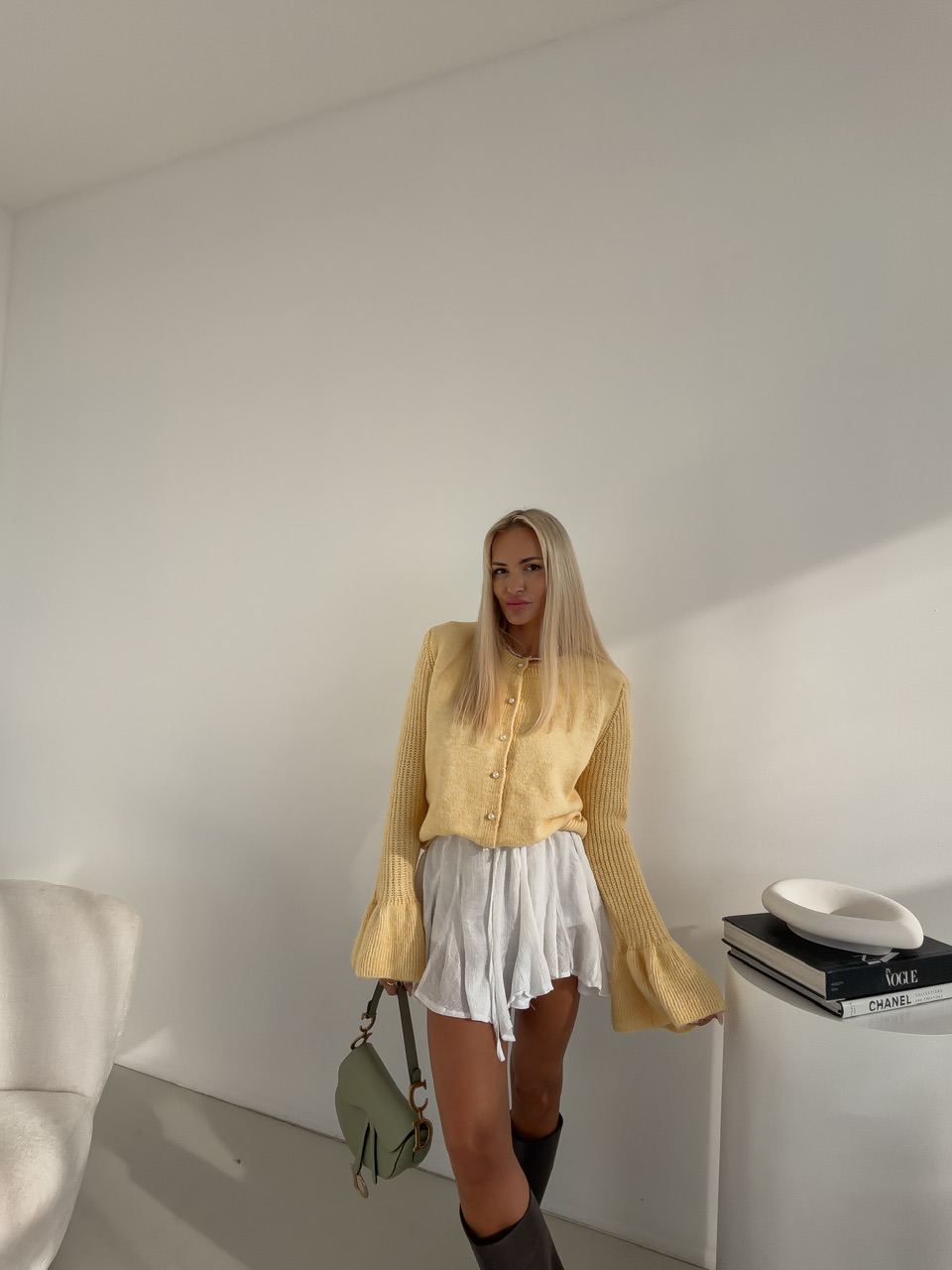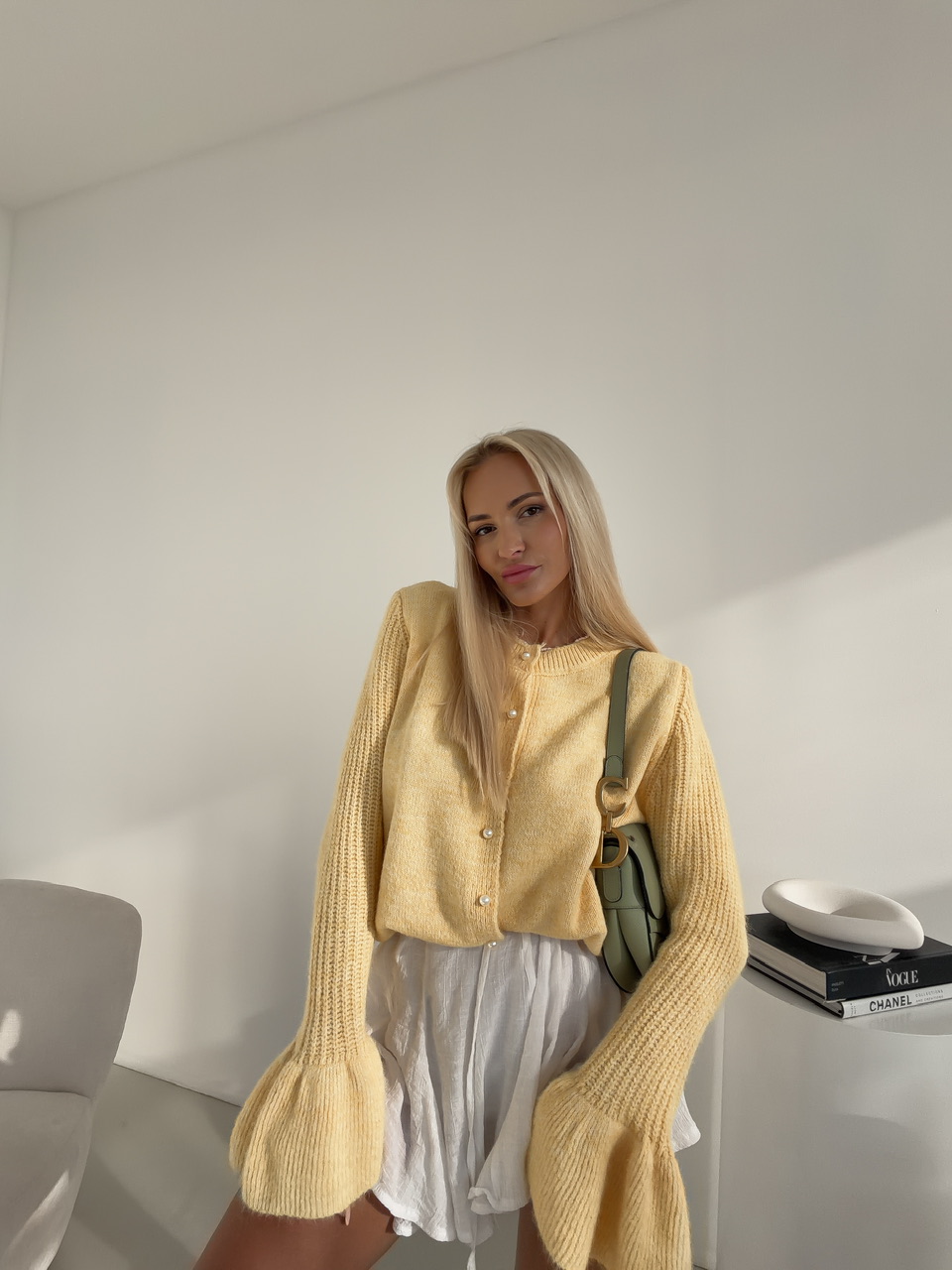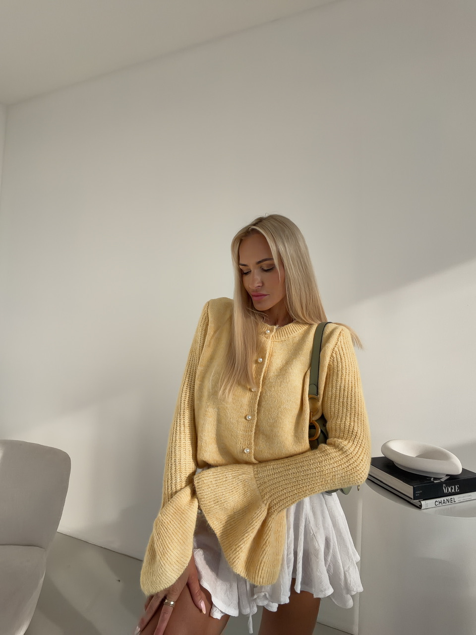 Elegantný sveter so zapínaním na perličky.  Jemný, nadčasový a maximálne ženský – tento sveter je kúsok, ktorý by nemal chýbať v žiadnom šatníku. Vyrobený z mäkkého, hrejivého úpletu, poskytuje pohodlie počas celého dňa. Najväčšou ozdobou sú perličkové gombíky, ktoré dodávajú svetru elegantný a romantický nádych. Perfektný do práce, na stretnutie s priateľmi aj večerné posedenie.