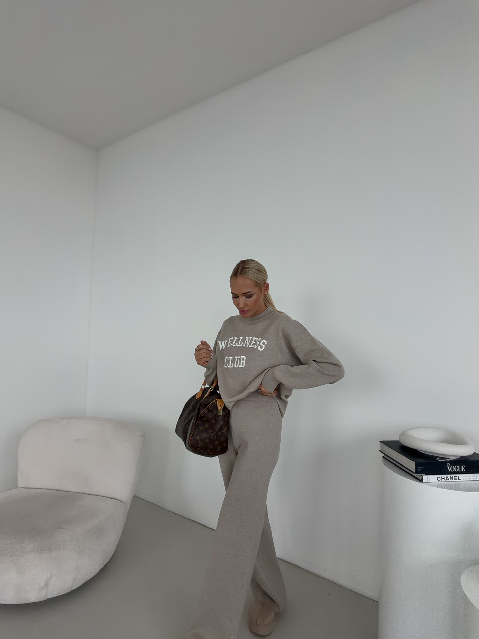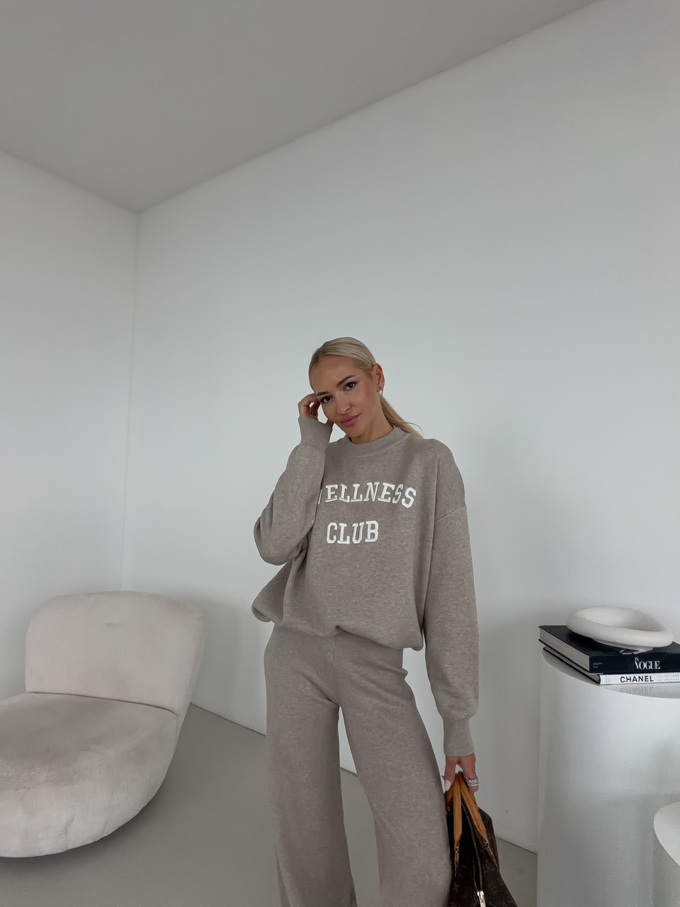 Moderný komplet spája pohodlie s trendy dizajnom, ideálny na každodenné nosenie aj vo voľnom čase. Nohavice sú vybavené elastickým pásom na gumu, ktorý zaručuje optimálne prispôsobenie a komfort pri pohybe. Mikina s okrúhlym výstrihom dopĺňa outfit jednoduchým a nadčasovým vzhľadom, pričom decentný nápis na prednej strane pridáva štýlový detail. Komplet je vyrobený z príjemného, kvalitného materiálu, ktorý je mäkký na dotyk a pohodlný na celodenné nosenie.