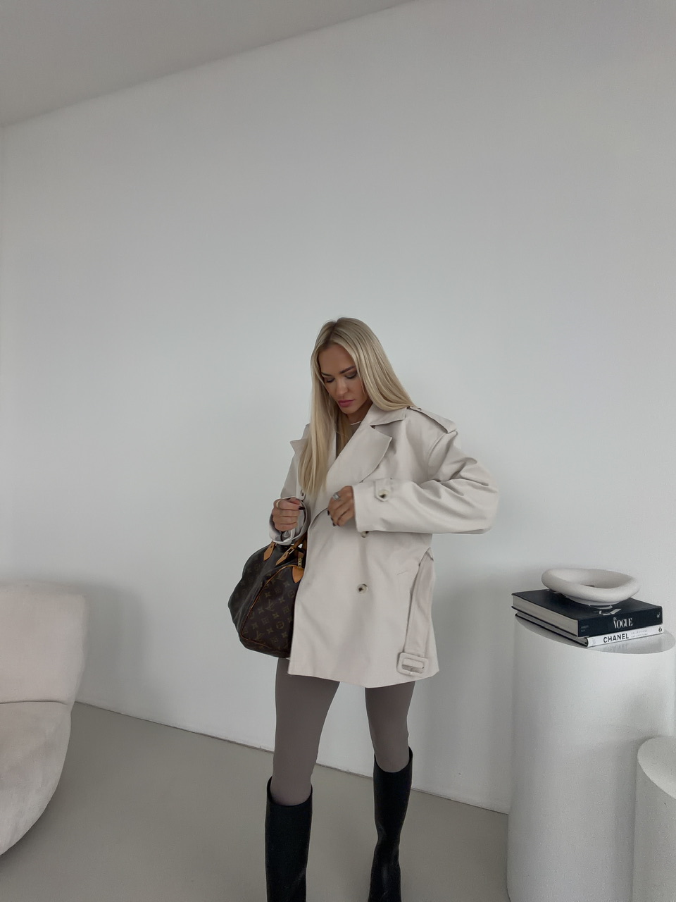 Elegantný a nadčasový trenčkot, ktorý kombinuje klasický dizajn s praktickými detailmi. Tento model je vybavený zapínaním na gombíky a putkami na opasok, čo dodáva outfitu štýlový a sofistikovaný vzhľad. Súčasťou trenčkotu je aj opasok, ktorý umožňuje zvýrazniť pás a prispôsobiť strih podľa postavy. Podšívka zaručuje pohodlie a ochranu proti chladnejšiemu počasiu, vďaka čomu je trenčkot vhodný na prechodné obdobia aj mierne chladnejšie dni.