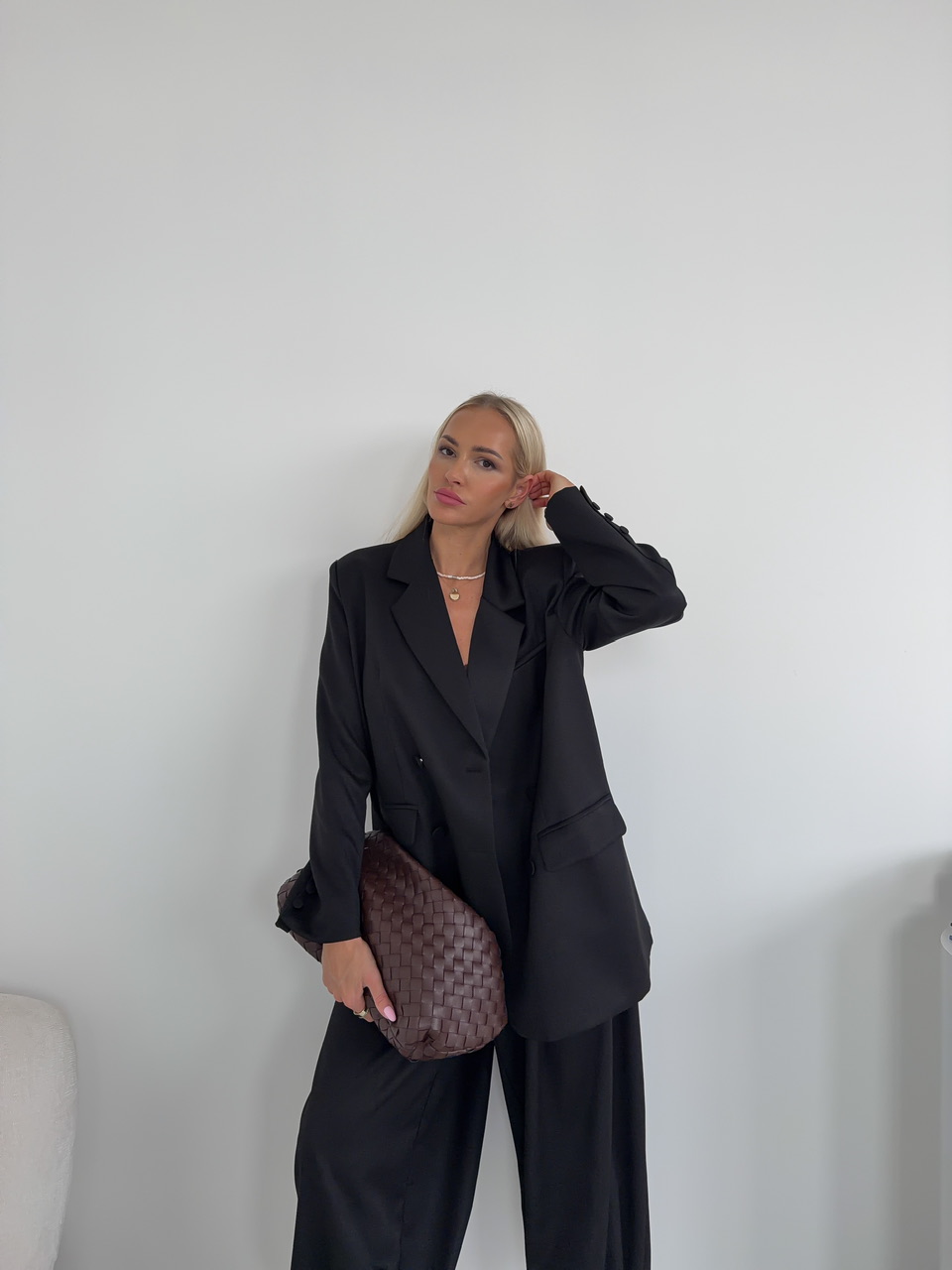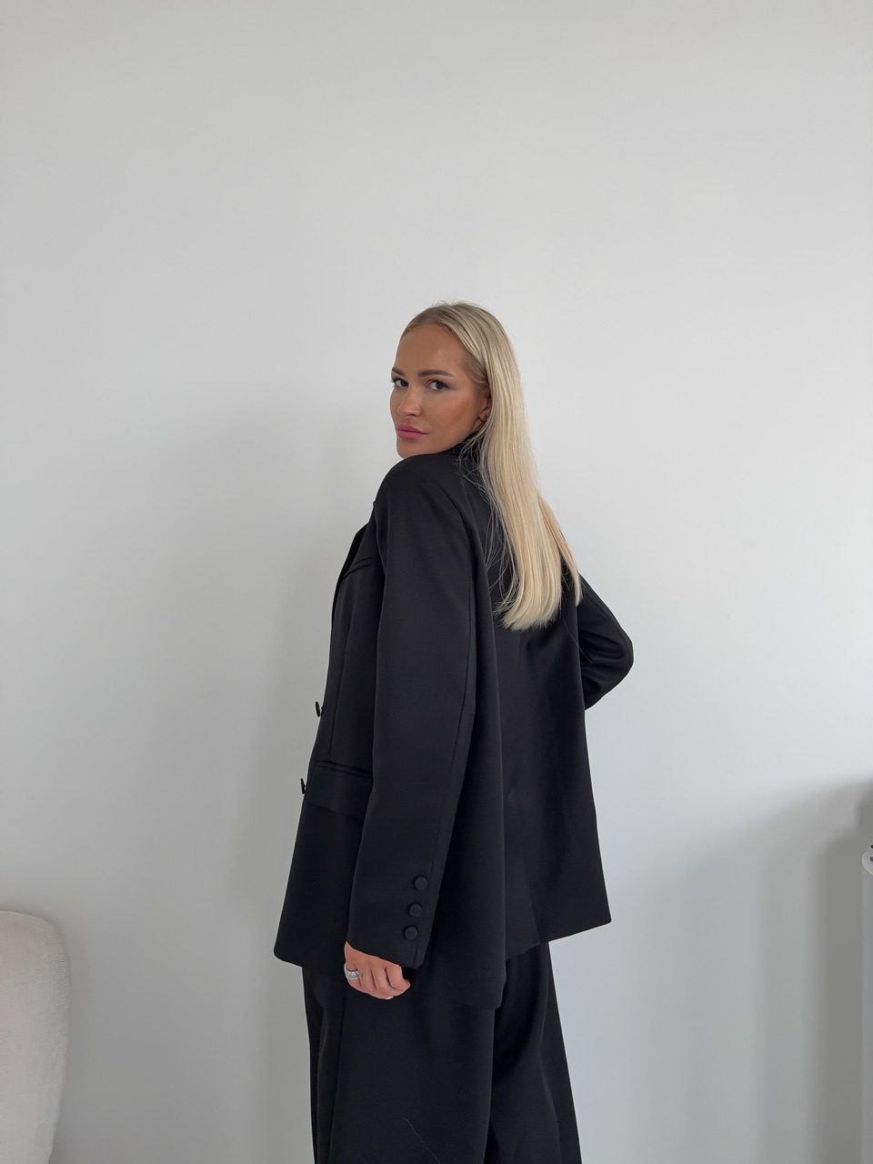 Štýlové dámske sako s dvojradovým zapínaním na gombíky prináša nadčasový a elegantný vzhľad vhodný do práce aj na spoločenské príležitosti. Vypchávky na pleciach jemne zvýrazňujú siluetu a dodávajú outfitu štruktúrovaný, sofistikovaný charakter. Sako je doplnené o falošné náprsné vrecko, ktoré podčiarkuje klasický dizajn, a dve praktické predné vrecká, ktoré kombinujú funkčnosť s moderným štýlom.