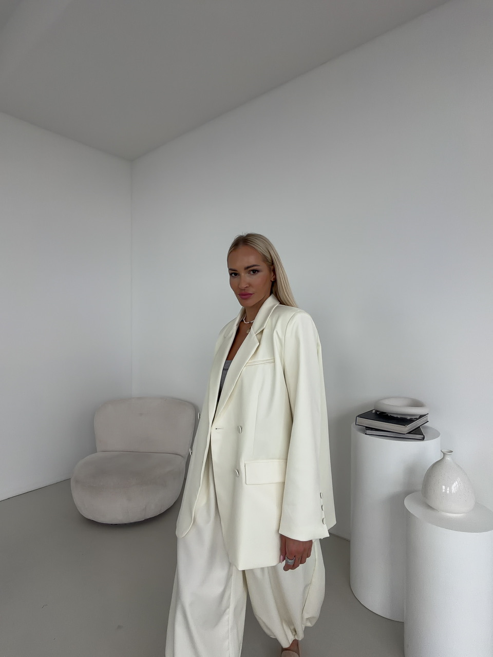 Štýlové dámske sako s dvojradovým zapínaním na gombíky prináša nadčasový a elegantný vzhľad vhodný do práce aj na spoločenské príležitosti. Vypchávky na pleciach jemne zvýrazňujú siluetu a dodávajú outfitu štruktúrovaný, sofistikovaný charakter. Sako je doplnené o falošné náprsné vrecko, ktoré podčiarkuje klasický dizajn, a dve praktické predné vrecká, ktoré kombinujú funkčnosť s moderným štýlom.