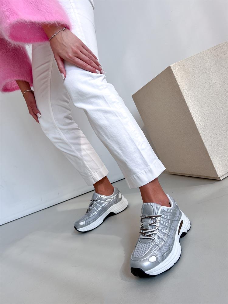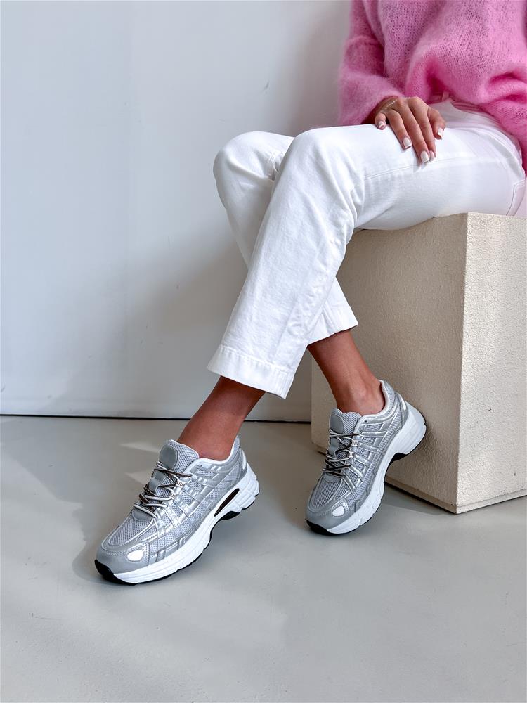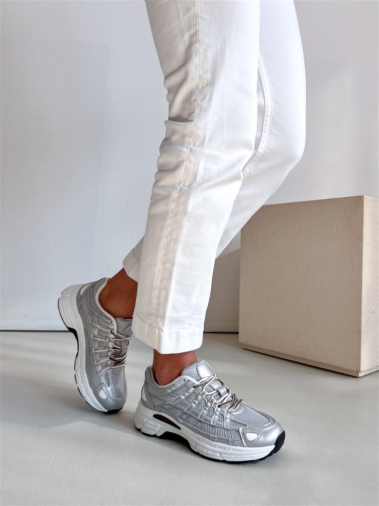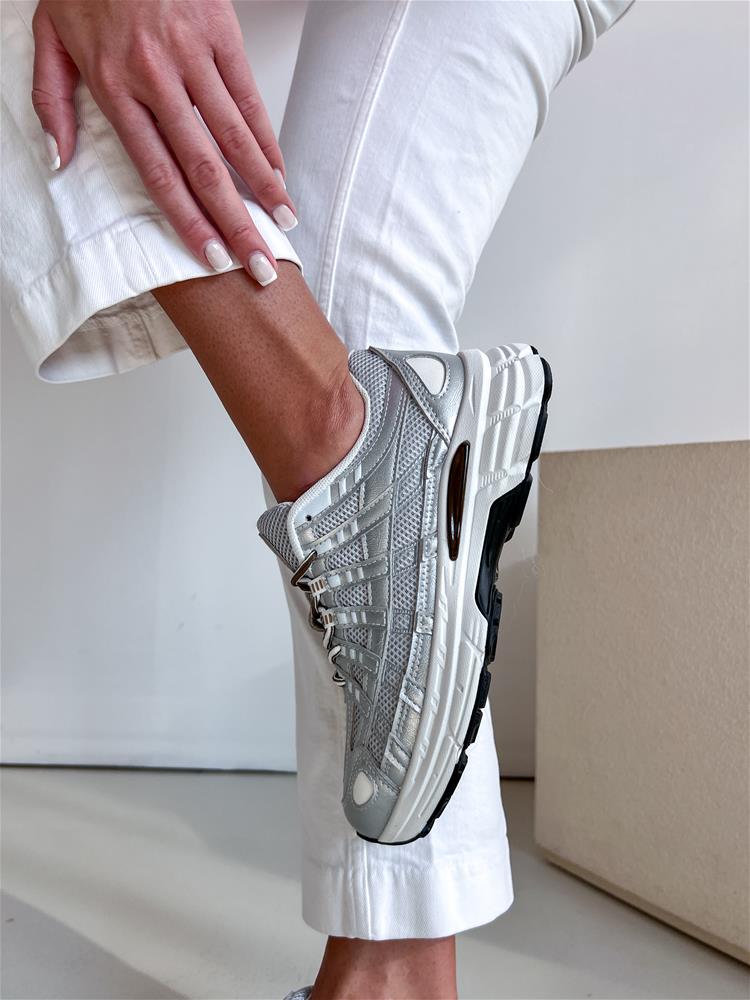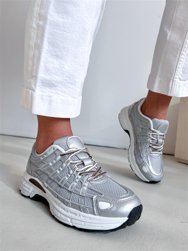 Športová obuv navýraznej bielo-čiernej podrážke. Zvršok sa skladá z viacerých materiálov. Predná časť je na šnurovanie.