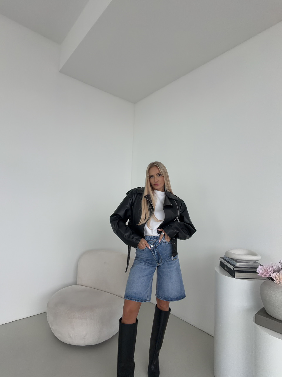 Moderné predĺžené denimové šortky, ktoré spájajú pohodlie s originálnym dizajnom. Zaujmú najmä netradičným šikmým zapínaním na gombíky v kombinácii so zipsom, ktoré dodáva kúsku jedinečný a štýlový vzhľad. Klasické putká na páse umožňujú doplniť šortky opaskom podľa vlastného štýlu, zatiaľ čo praktické predné aj zadné vrecká zabezpečujú funkčnosť a každodenný komfort. Predĺžený strih pôsobí moderne a zároveň poskytuje viac pohodlia pri nosení.